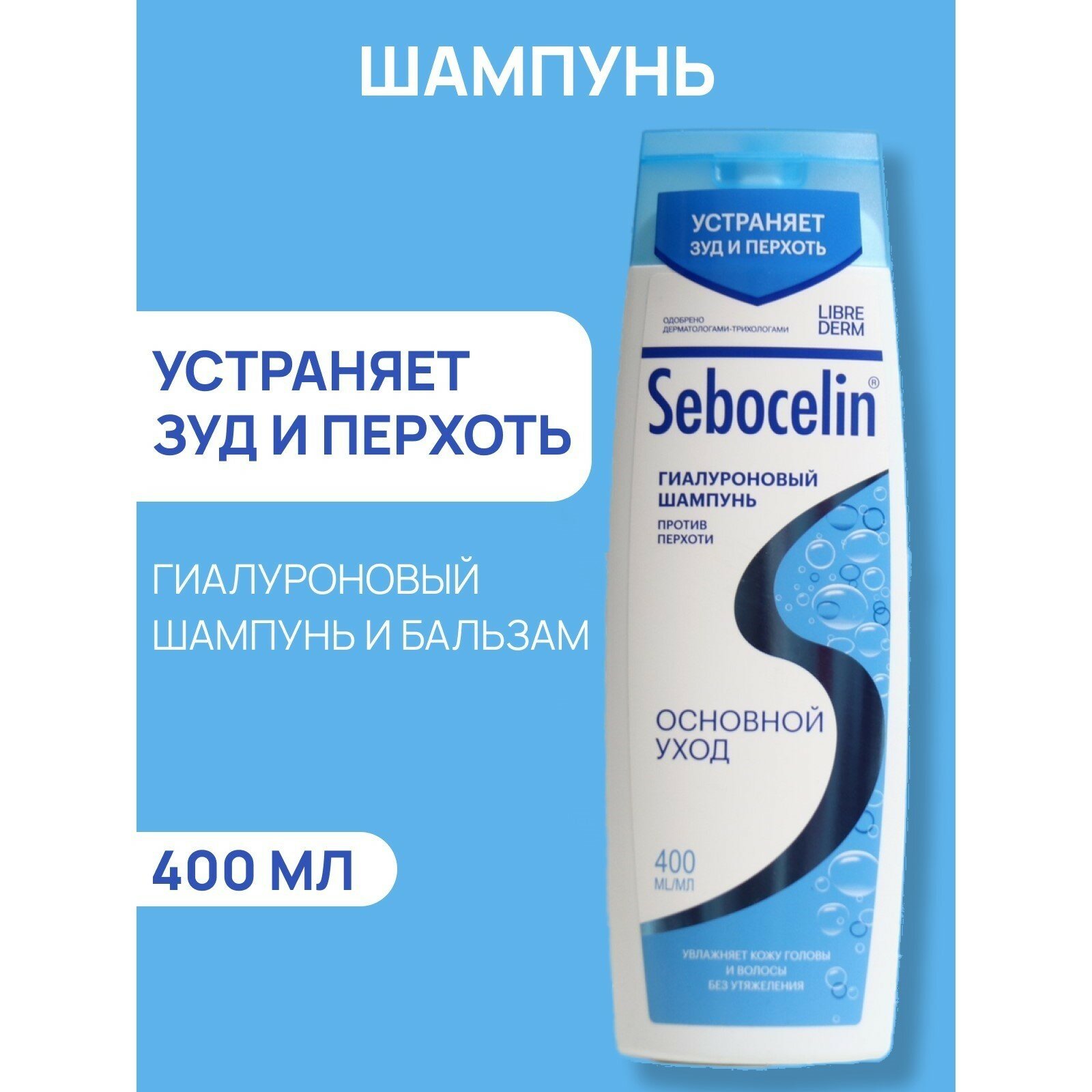 Librederm Шампунь гиалуроновый против перхоти SEBOCELIN основной уход, 400 мл