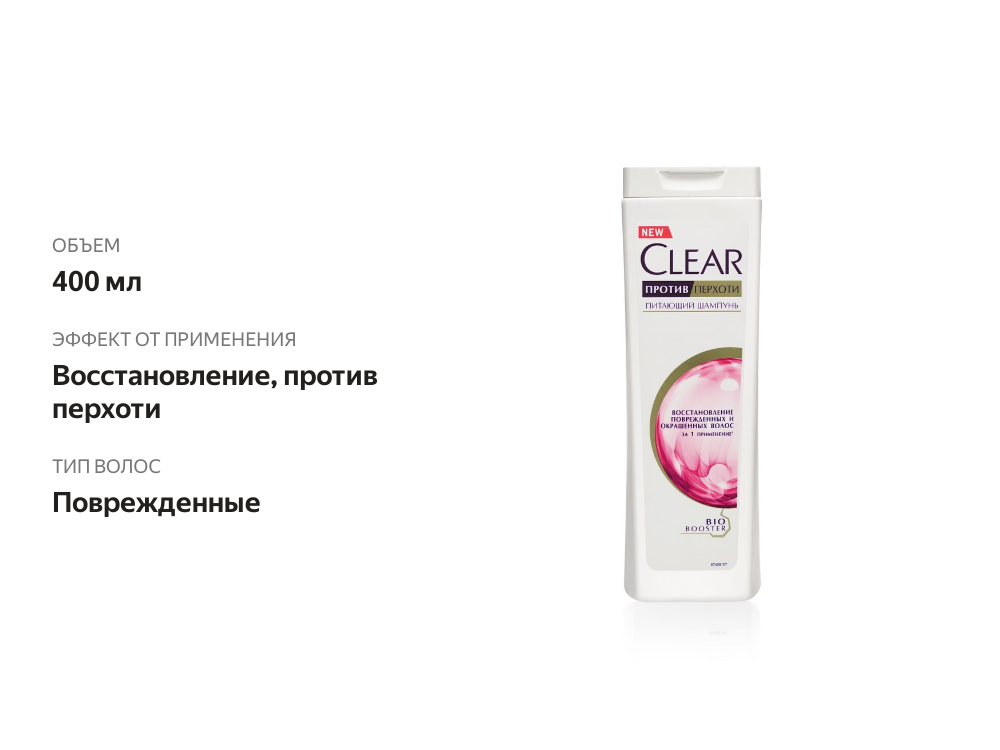 Купить Clear шампунь против перхоти Восстановление поврежденных и окрашенных волос 400 мл