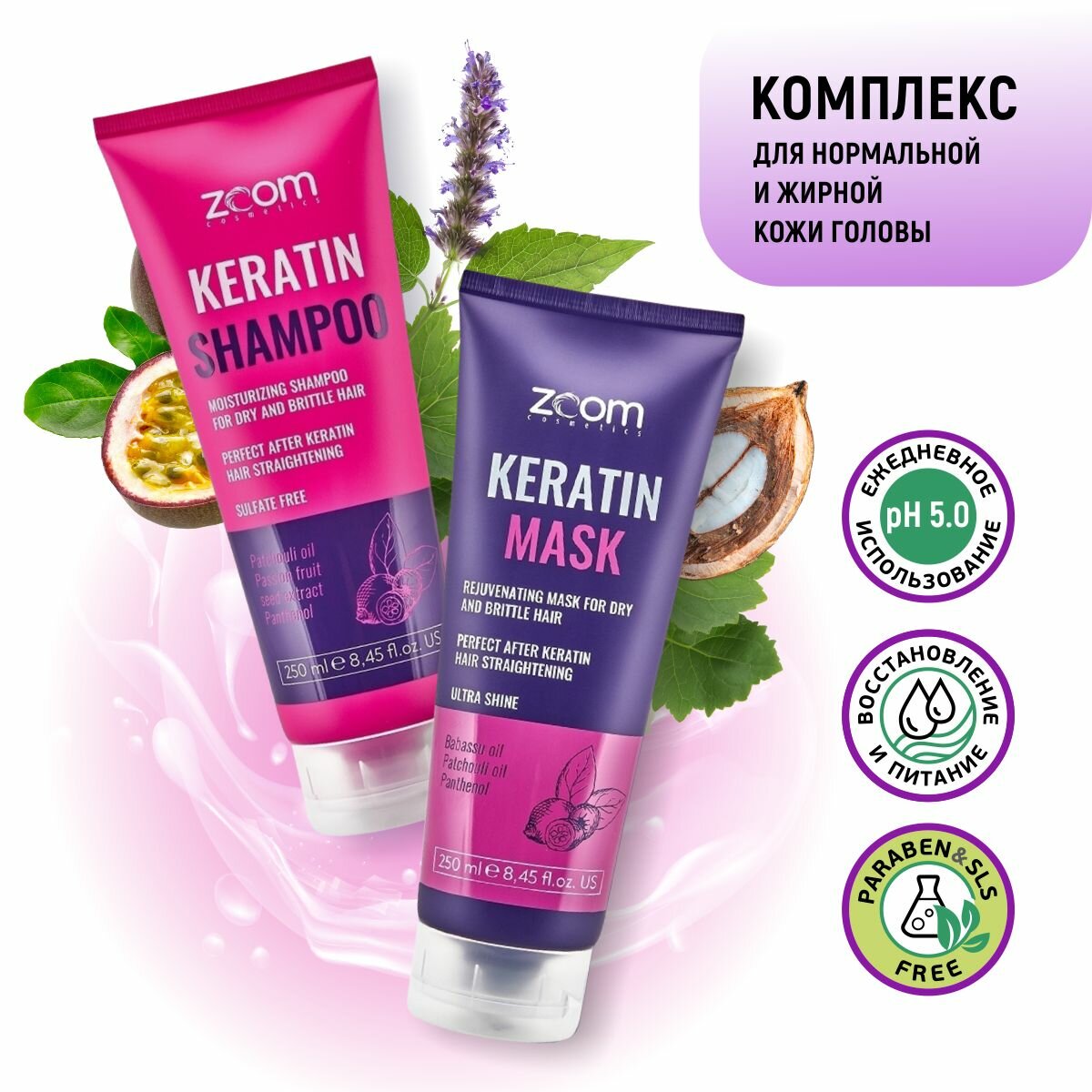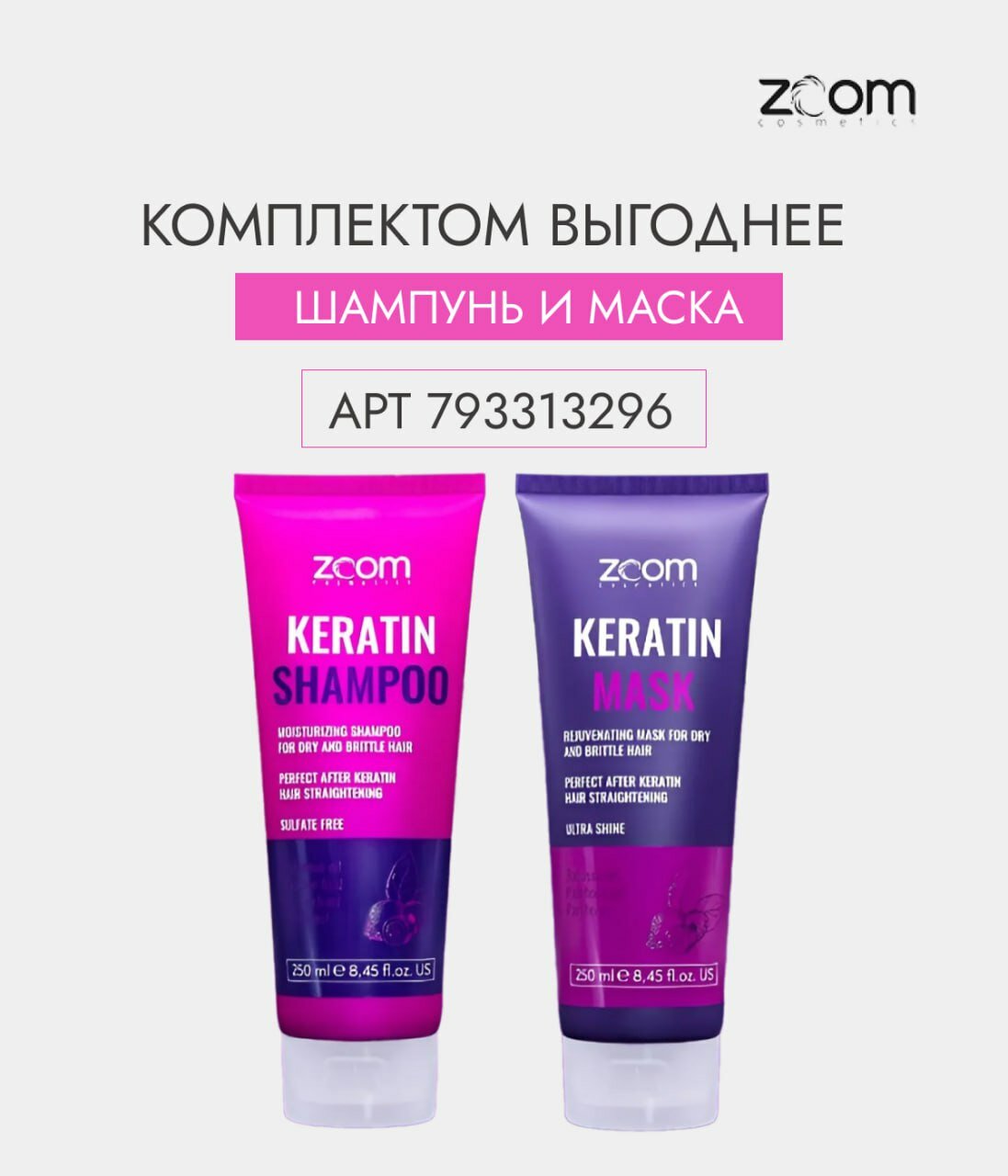 Купить Набор ZOOM Keratin Shampoo Шампунь + маска 250/250 ml
