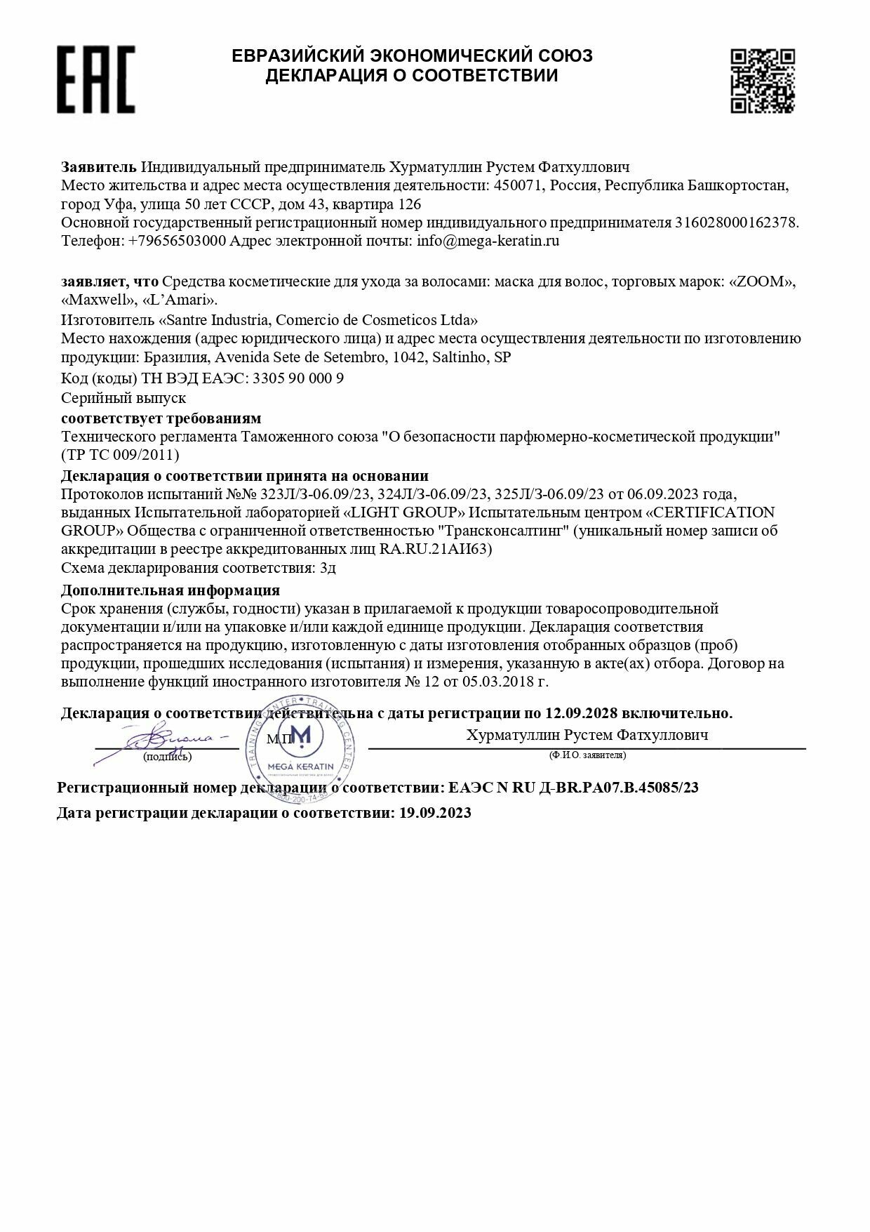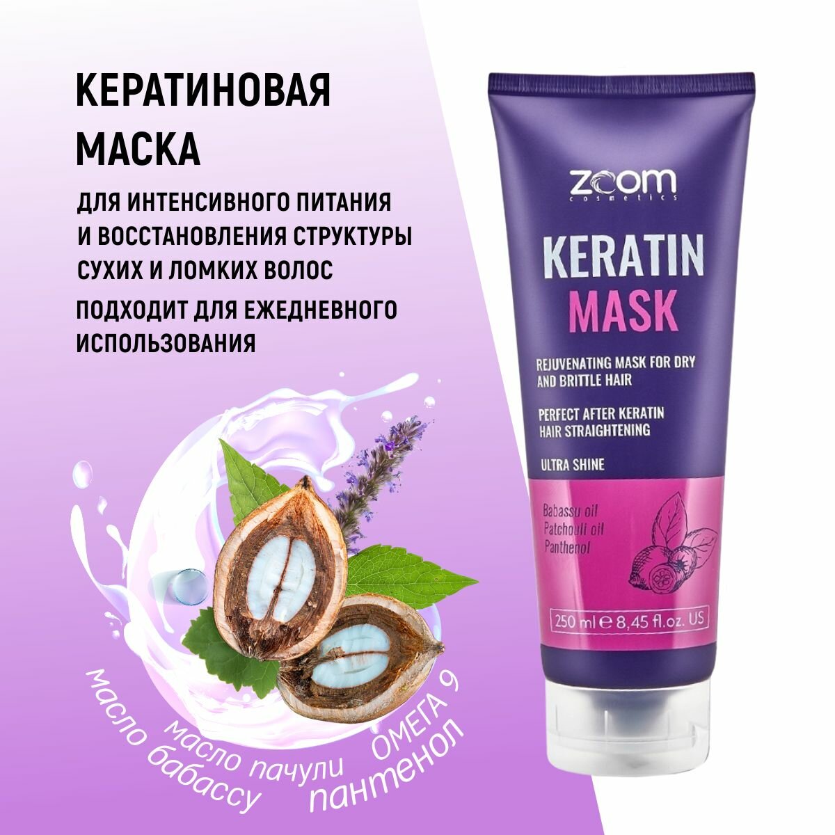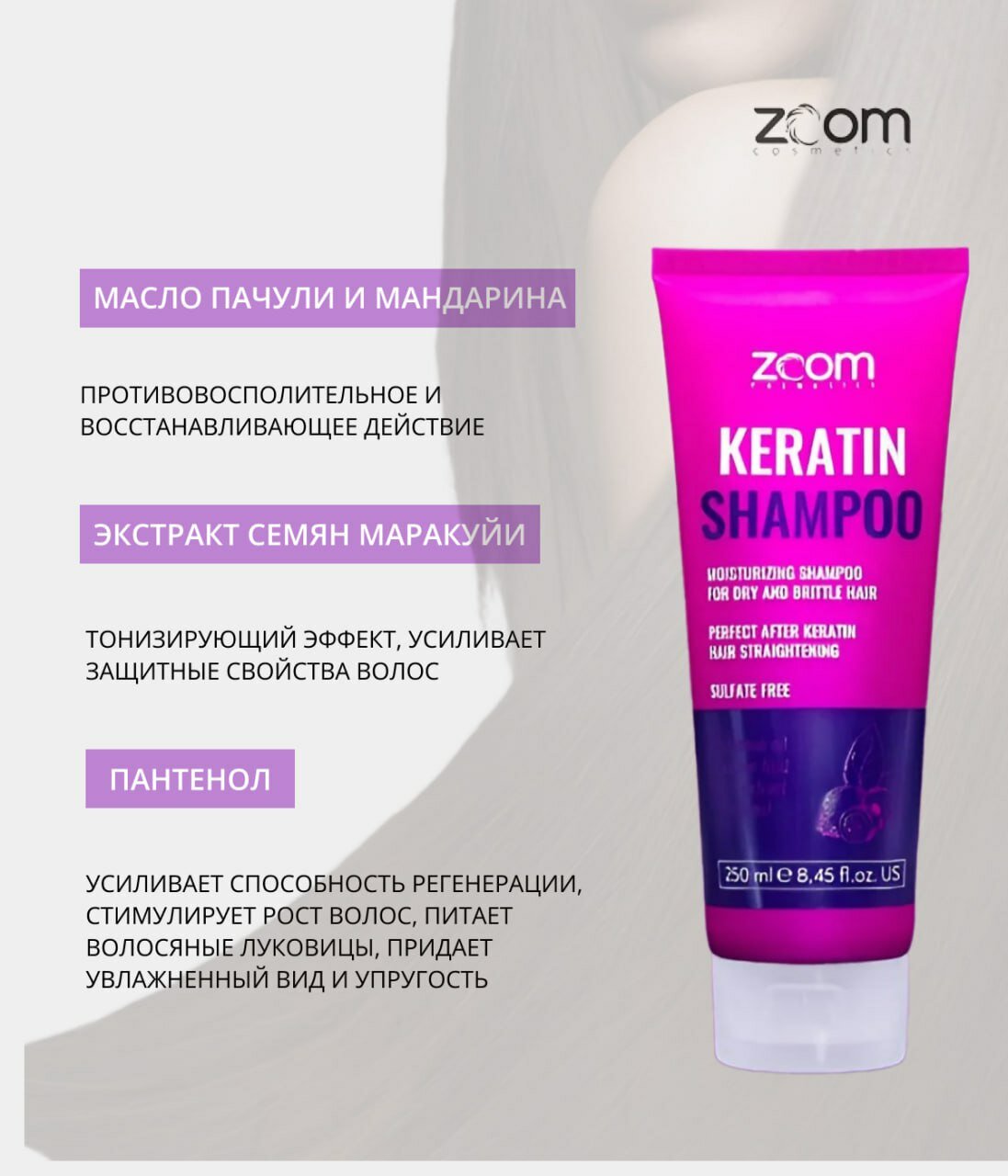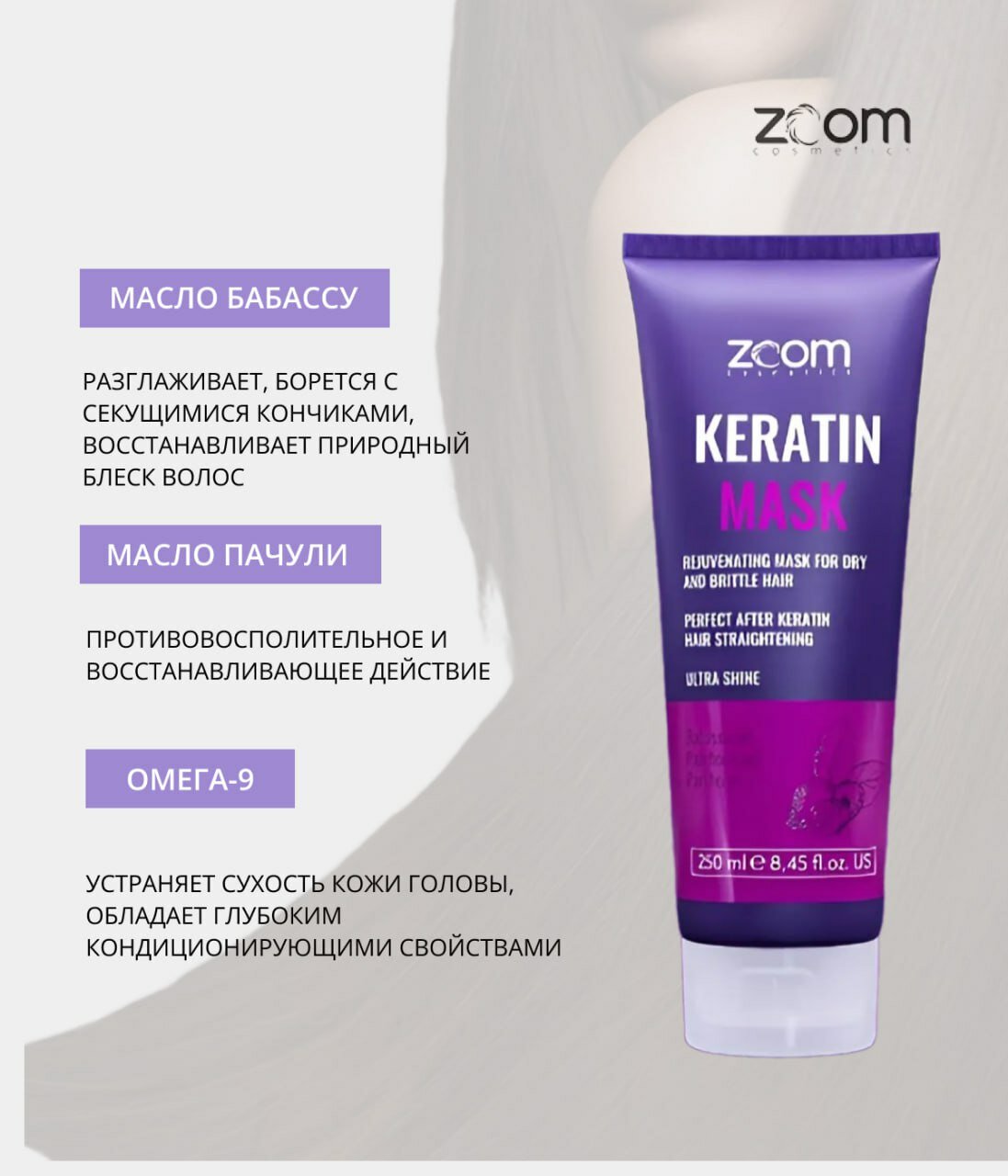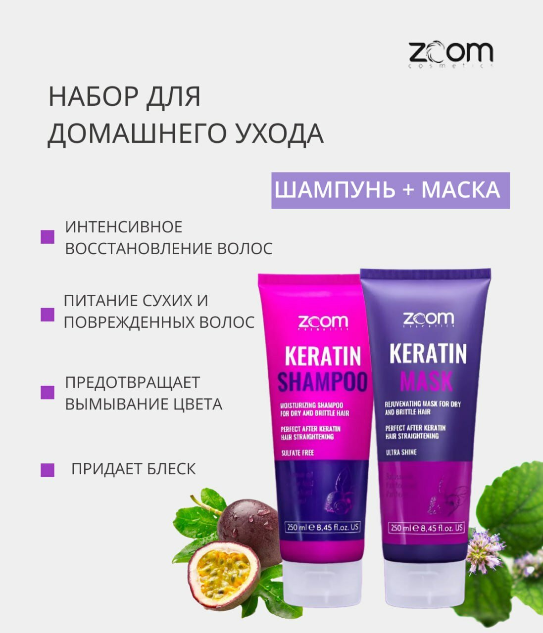 Набор ZOOM Keratin Shampoo Шампунь + маска 250/250 ml интересное:
