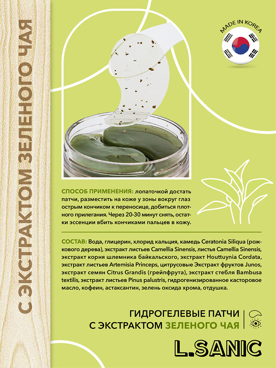 Гидрогелевые патчи с экстрактом зеленого чая, 60 шт, L.SANIC интересное: