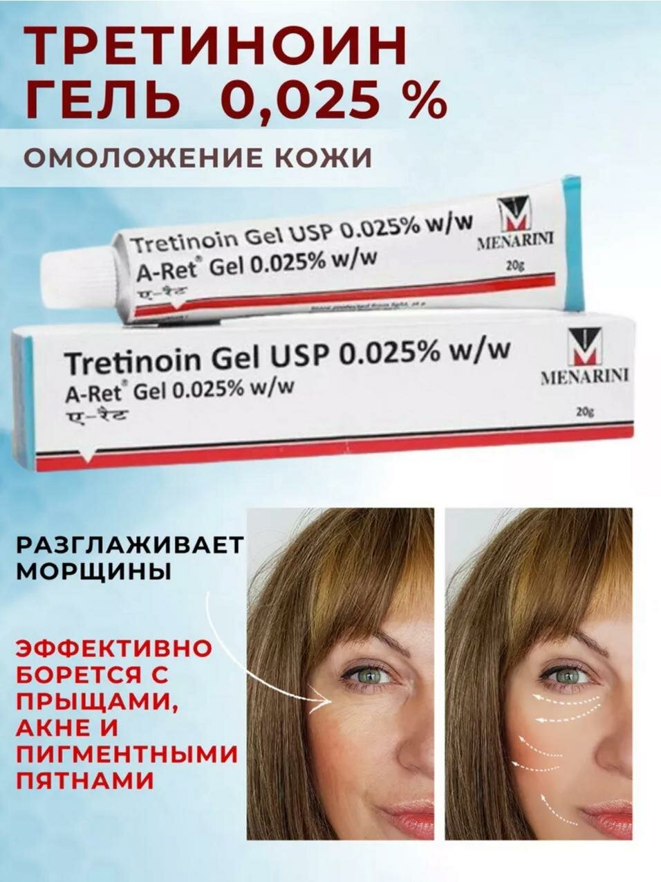 Ниже Вы можете прочитать отзывы на Menarini Индийский гель для лица RETINO-A 0.025% Tretinoin Cream U. S. P 0.025% - 20 g, ознакомится с подробными характеристиками, посмотреть интересные обзоры и фотографии на Menarini Индийский гель для лица RETINO-A 0.025% Tretinoin Cream U. S. P 0.025% - 20 g.
