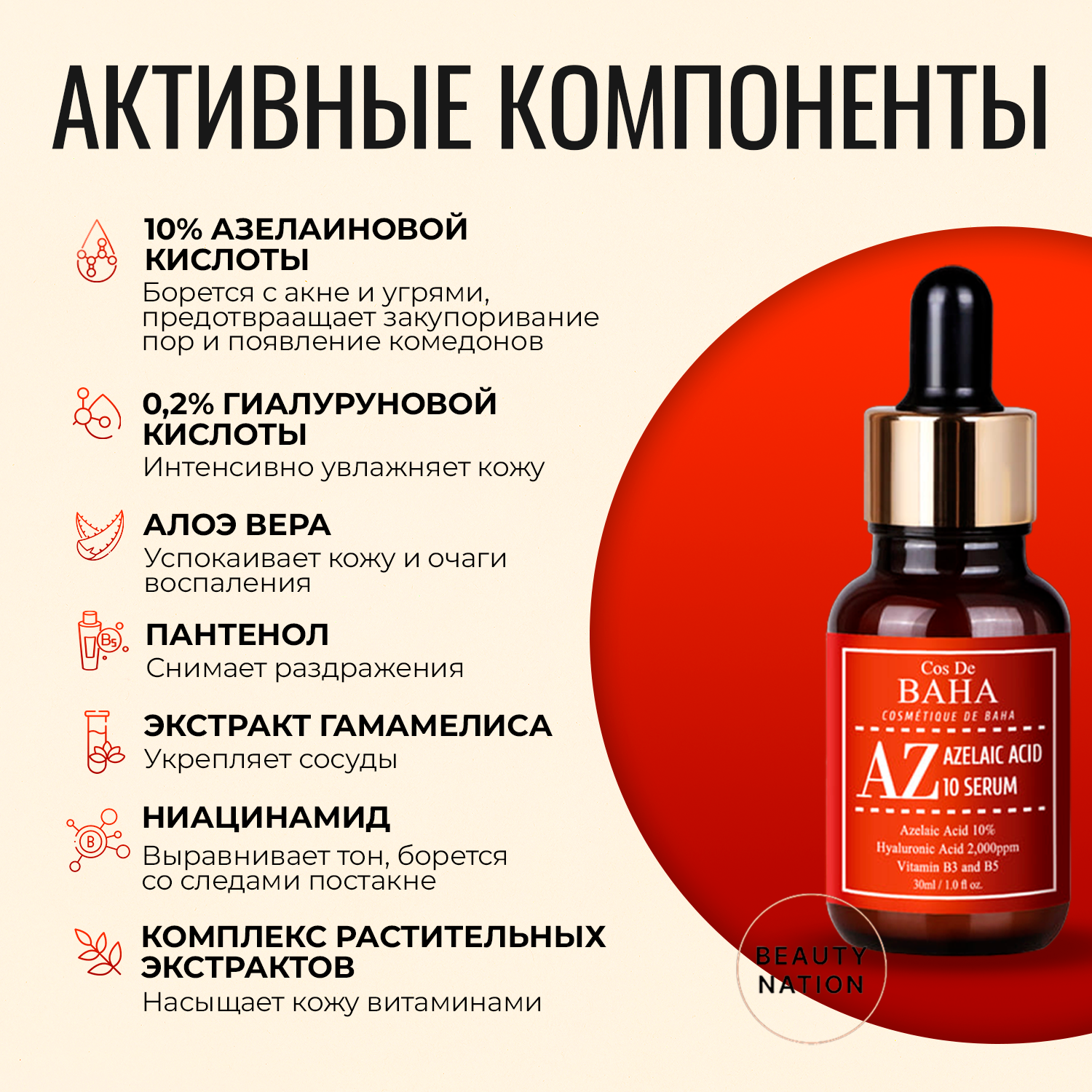 COS DE BAHA AZ Azelaic Acid 10 Serum сыворотка для лица с азелаиновой кислотой, 30 мл, 150 г