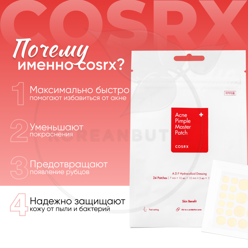 Патчи от воспалений и акне 24шт | Cosrx Acne Pimple Master Patch интересное: