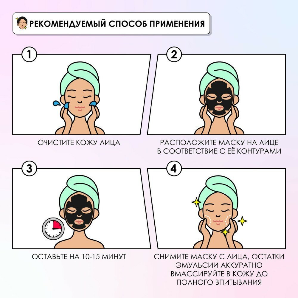 | Способ применения | используйте на предварительно очищенную кожу. Достаньте маску из упаковки и разверните. Наложите маску на лицо и равномерно распределите. При необходимости немного растяните маску в области глаз. Рекоммендованное время процедуры 5-10 минут. После окончания процедуры остатки лосьона мягко распределите по зоне лица, шеи и декольте. Не смывайте. Для ухода за сухими участками тела - после использования маски на лице сложите ее и проведите маской по всему телу |