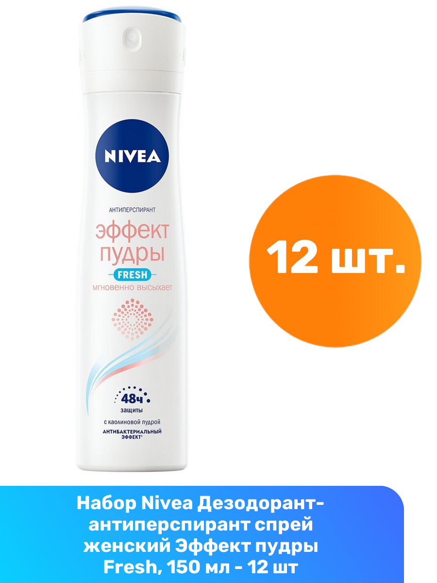 Купить Дезодорант-антиперспирант спрей Nivea Эффект пудры Fresh, 150 мл, 12 шт