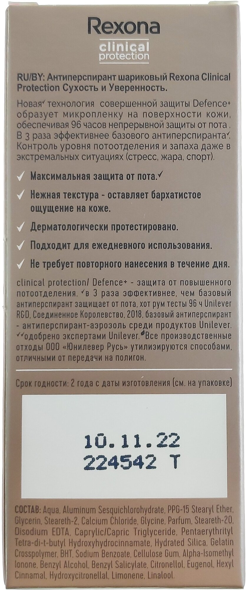 Rexona Clinical Protection антиперспирант-дезодорант шариковый Сухость и Уверенность 50 мл интересное: