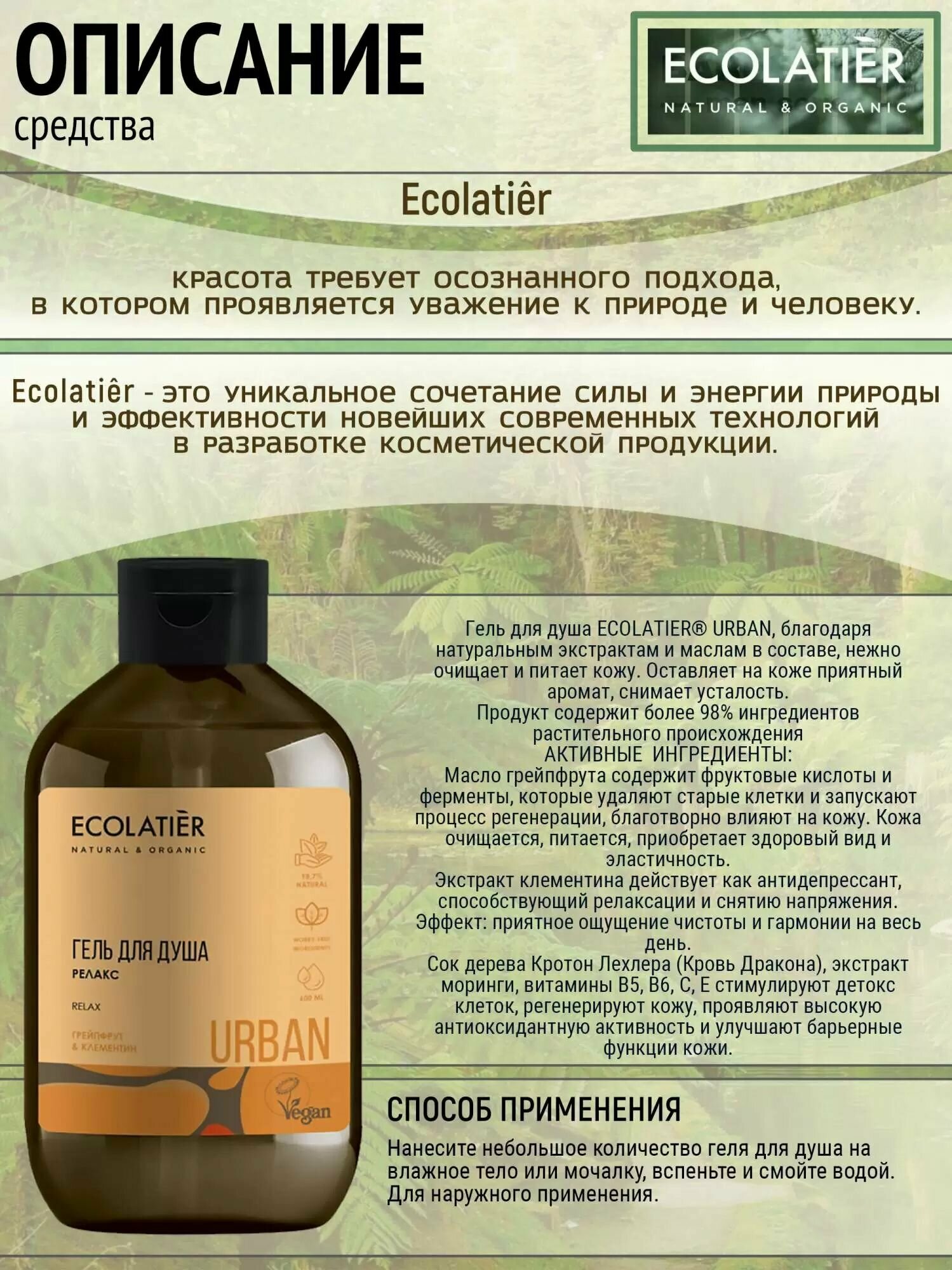 Гель для душа Ecolatier Релакс грейпфрут и клементин 600мл 842102 интересное: