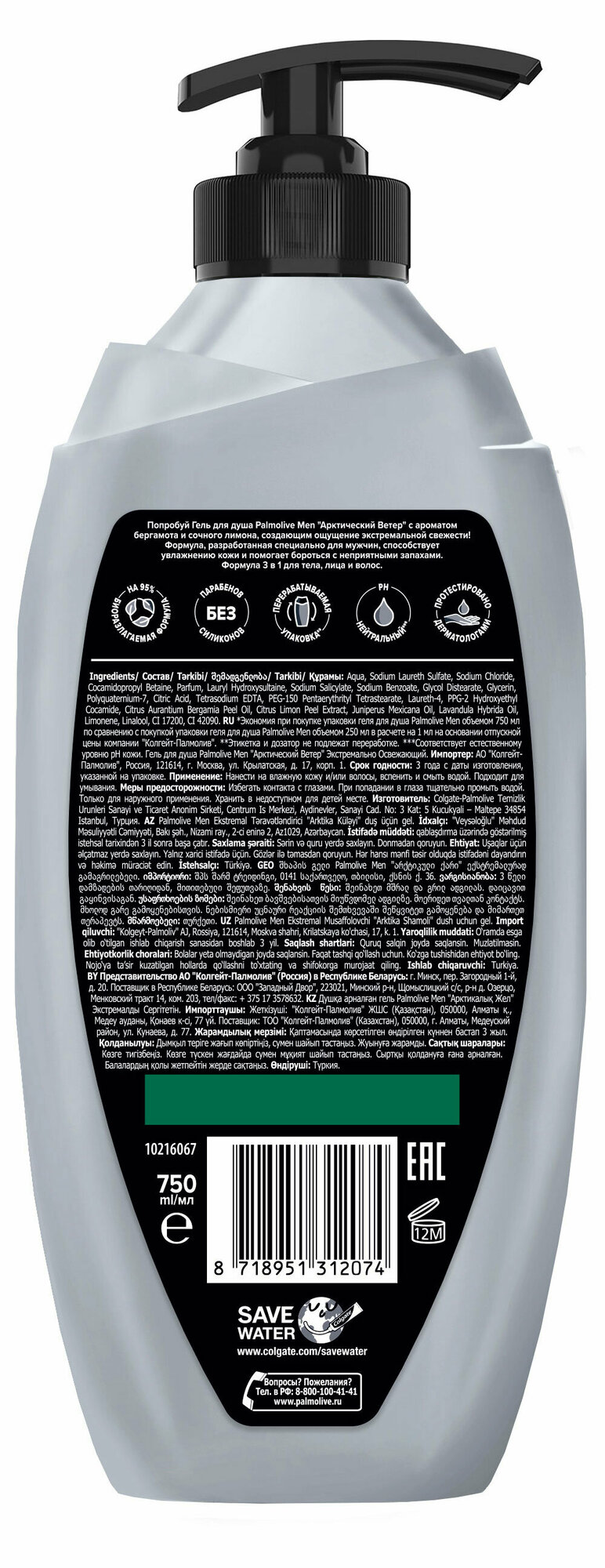 Купить Гель для душа Palmolive Men 3в1 Экстремально Освежающий Арктический Ветер 750 мл