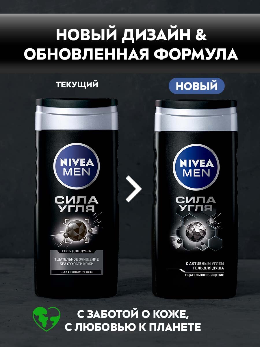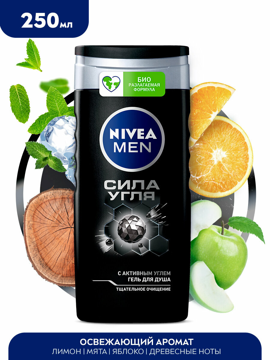 Гель для душа мужской NIVEA MEN "Сила угля" очищение без сухости кожиарктическая свежесть, 250 мл, 250 г