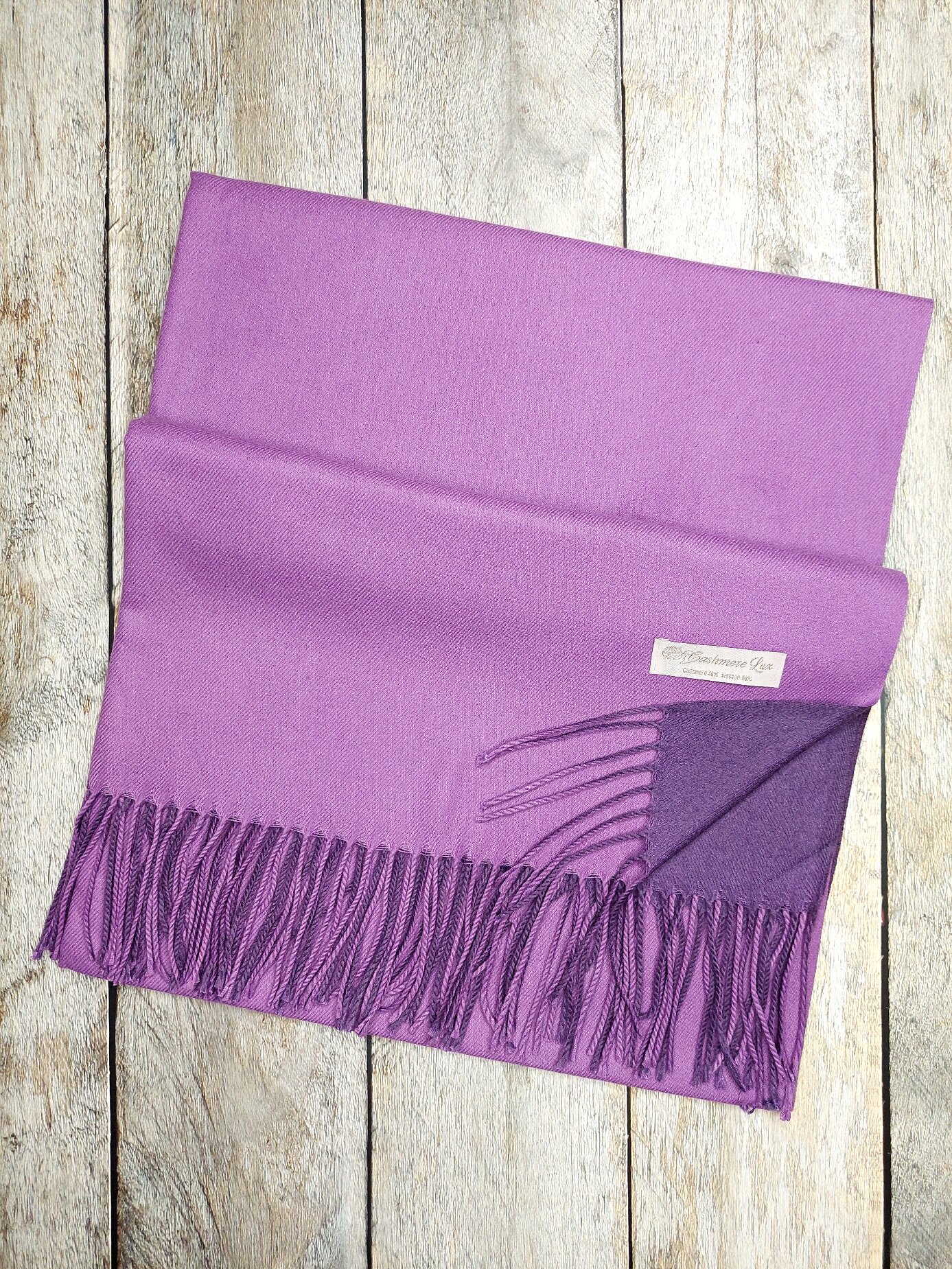 Купить Палантин кашемир двусторонний теплый 180 Х 70 см фиолетовый
