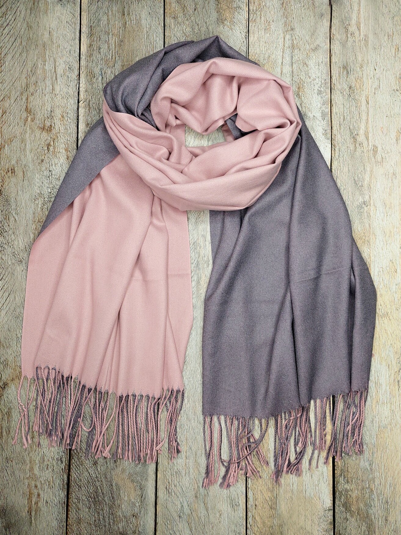 Палантин кашемир двусторонний теплый 180 Х 70 см розовая серый