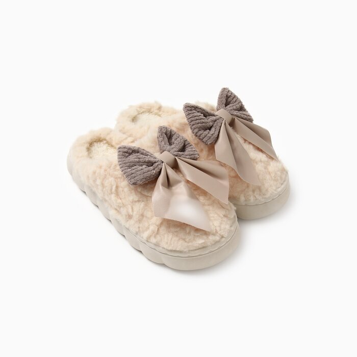 Купить Тапочки женские домашние закрытые плюшевые размер 40-41 цвет молочный