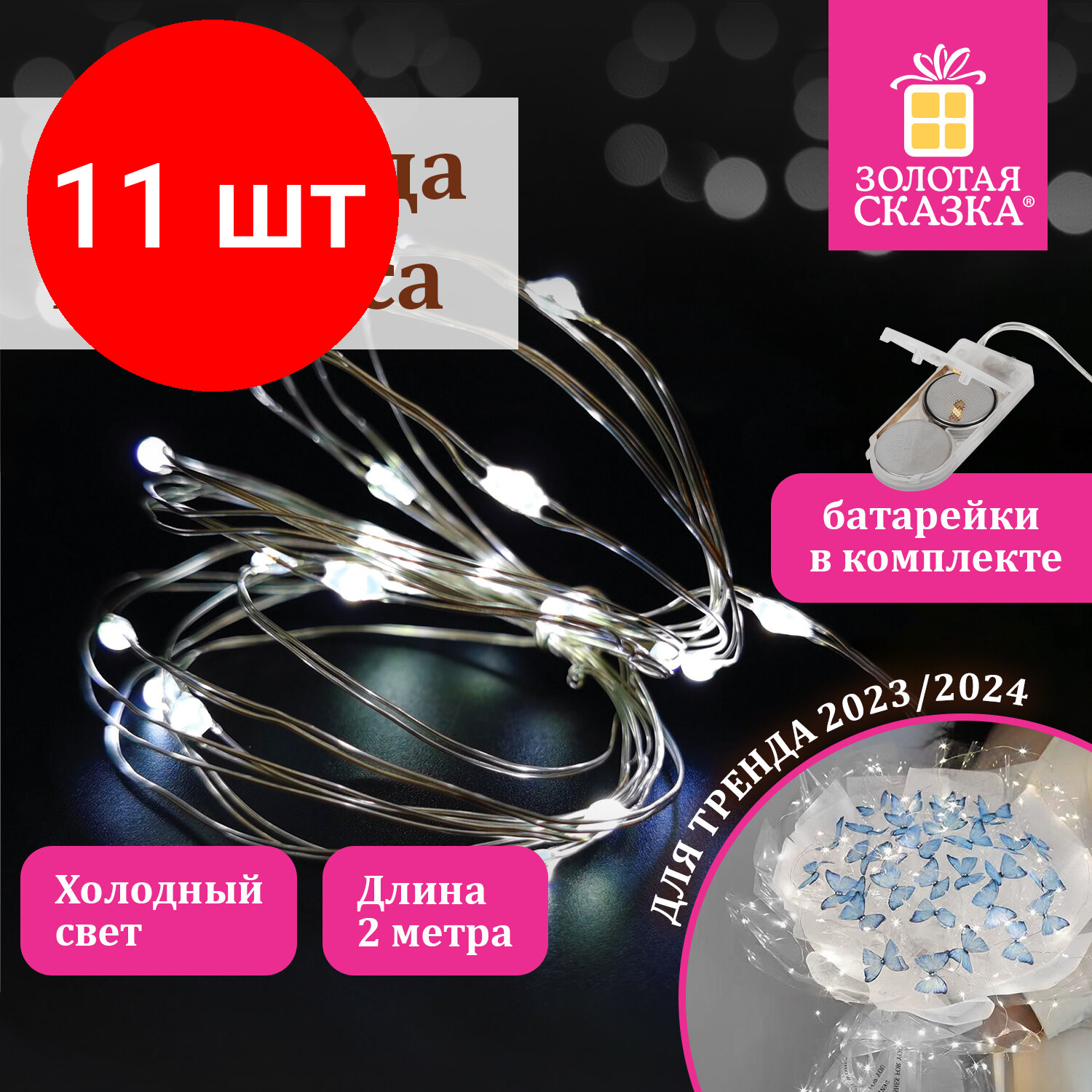 Купить Гирлянда светодиодная нить комнатная Роса на батарейках, для дома и комнаты, новогодняя 2м, 20LED, холодный белый, Золотая Сказка, 591932