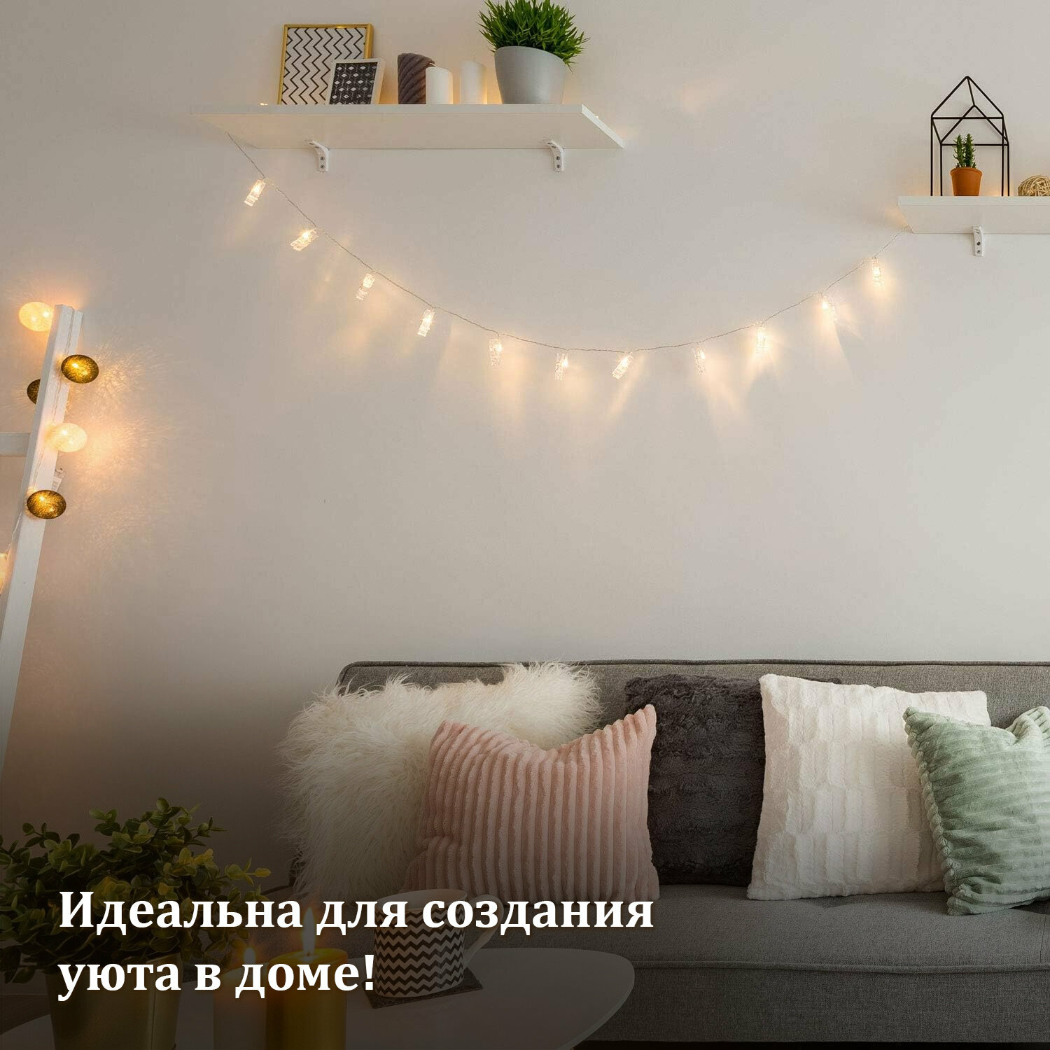 Гирлянда светодиодная нить комнатная Роса на батарейках, для дома и комнаты, новогодняя 2м, 20LED, теплый белый, Золотая Сказка, 591931