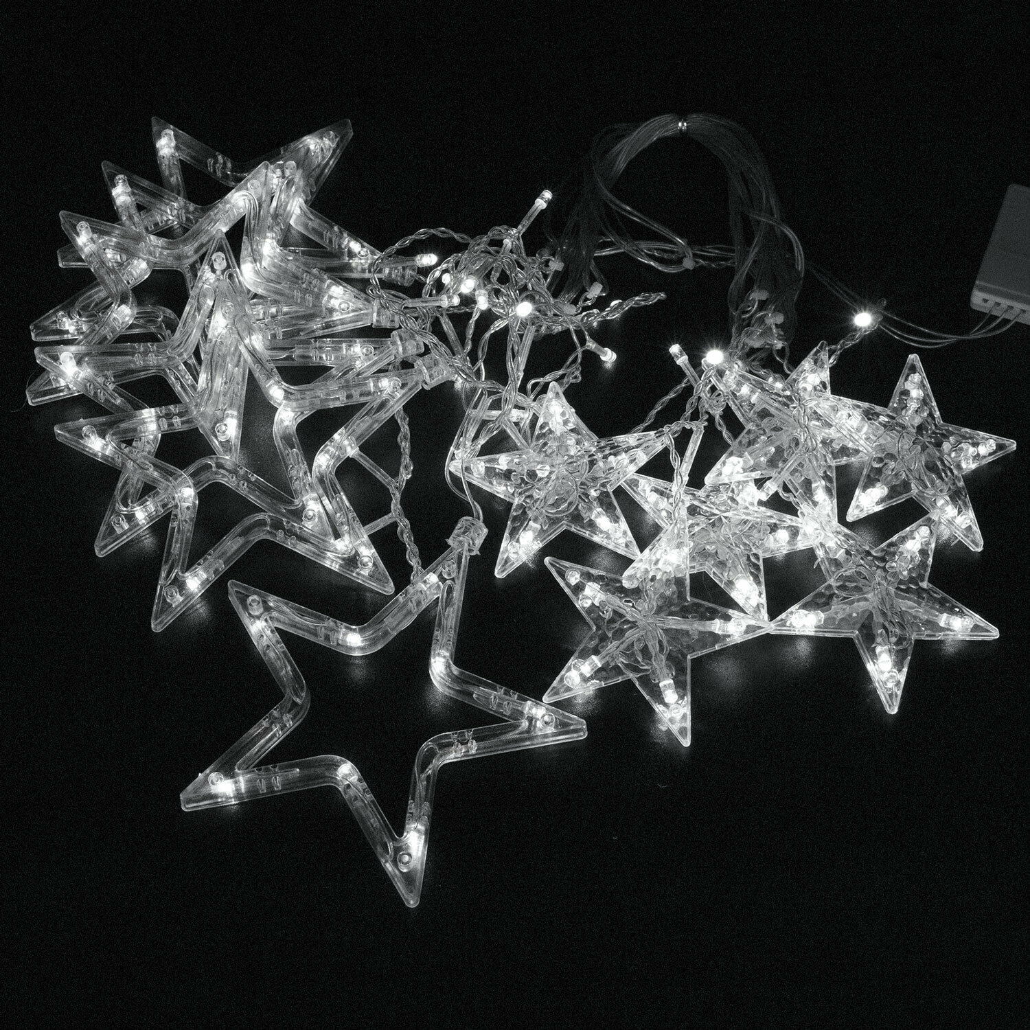 Гирлянда "Нить" 4 м с насадками "Звёздочка", IP20, прозрачная нить, 20 LED, свечение тёплое белое, 8 режимов, 220 В
