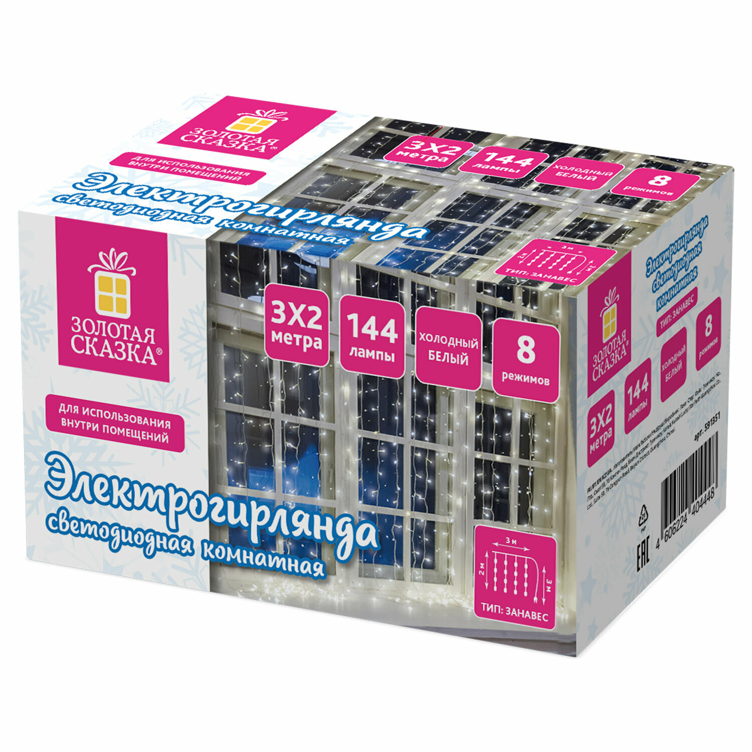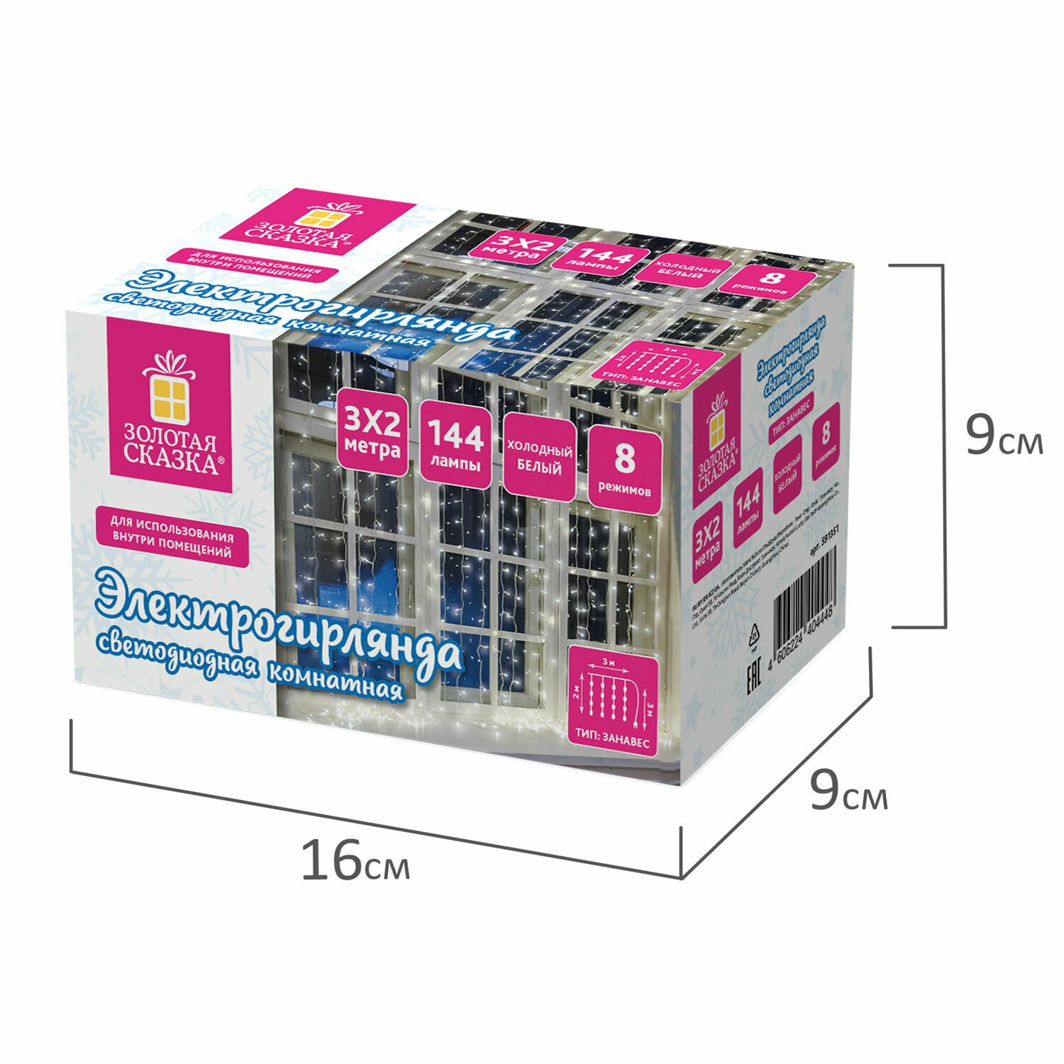 СохранитьГирлянда светодиодная занавес комнатная Штора, электрическая от сети, для дома, новогодняя 3х2м, 144LED, холодный белый, 220V, Золотая Сказка, 591351 интересное: