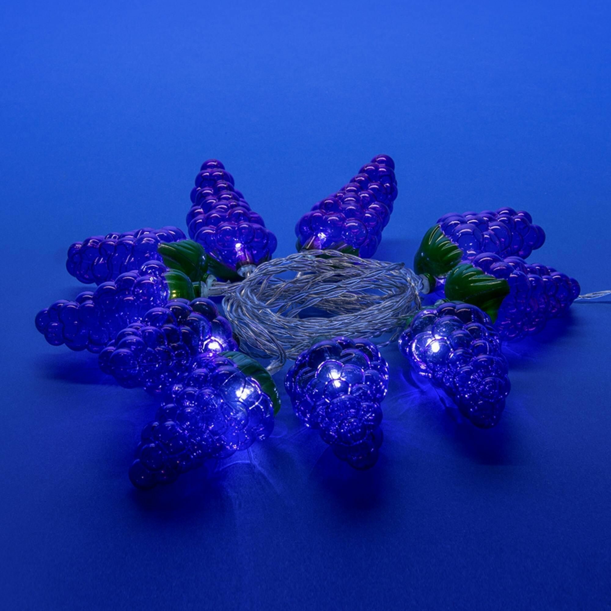 Гирлянда светодиодная на батарейках Uniel 2AA (не в/к), «Виноград», 4м. 10 светодиодов. Белый свет. Провод прозрачный UL-00003392