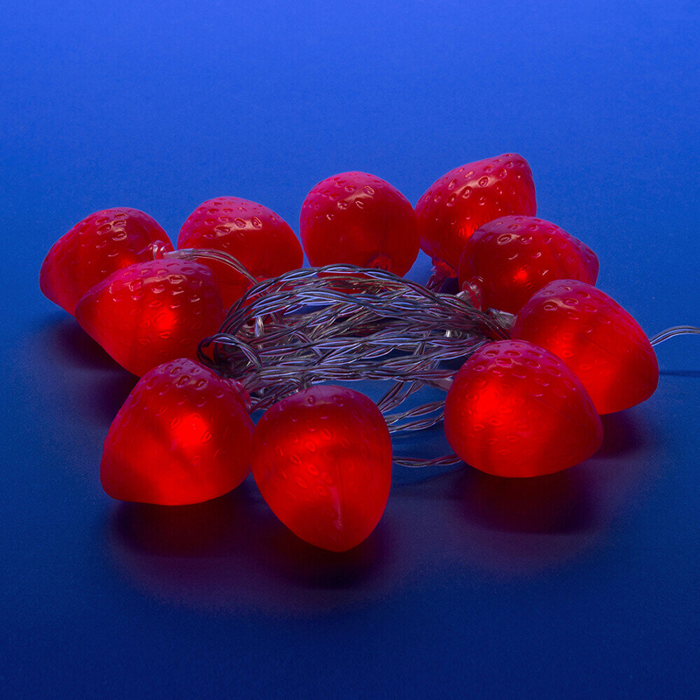 Гирлянда светодиодная на батарейках Uniel 2AA (не в/к), «Клубника», 4м. 10 светодиодов. Красный свет. Провод прозрачный UL-00003394