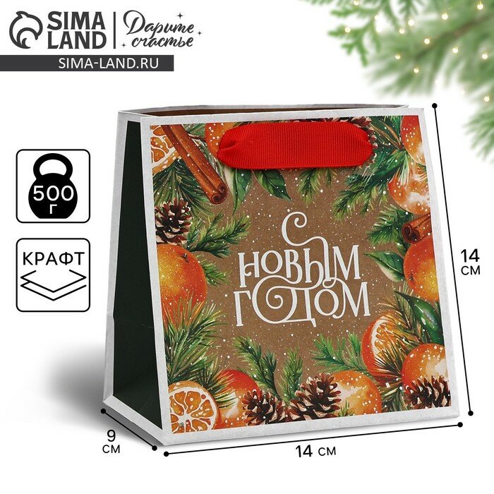 Пакет крафтовый квадратный «С Новым годом», 14 х 14 х 9 см , Новый год