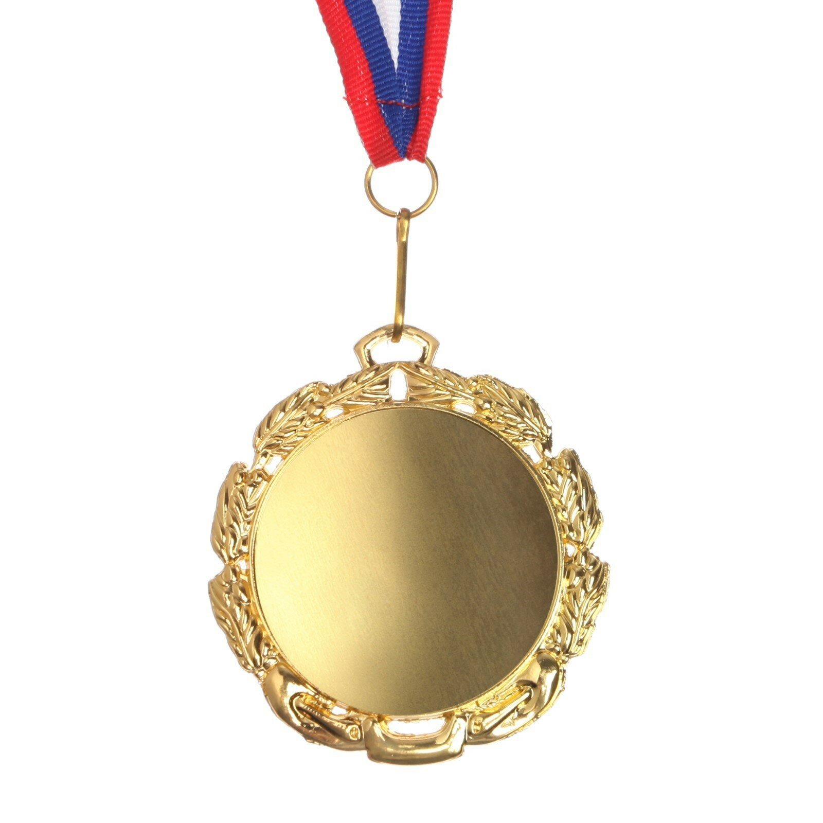Медаль спортивная наградная под нанесение, золотой цвет, диаметр 7 см. С лентой в комплекте.