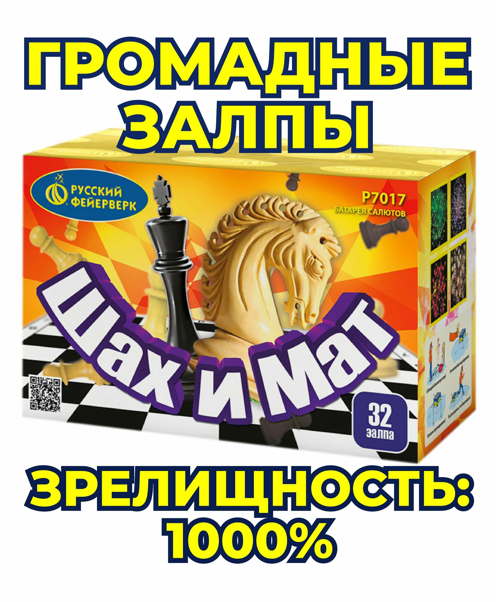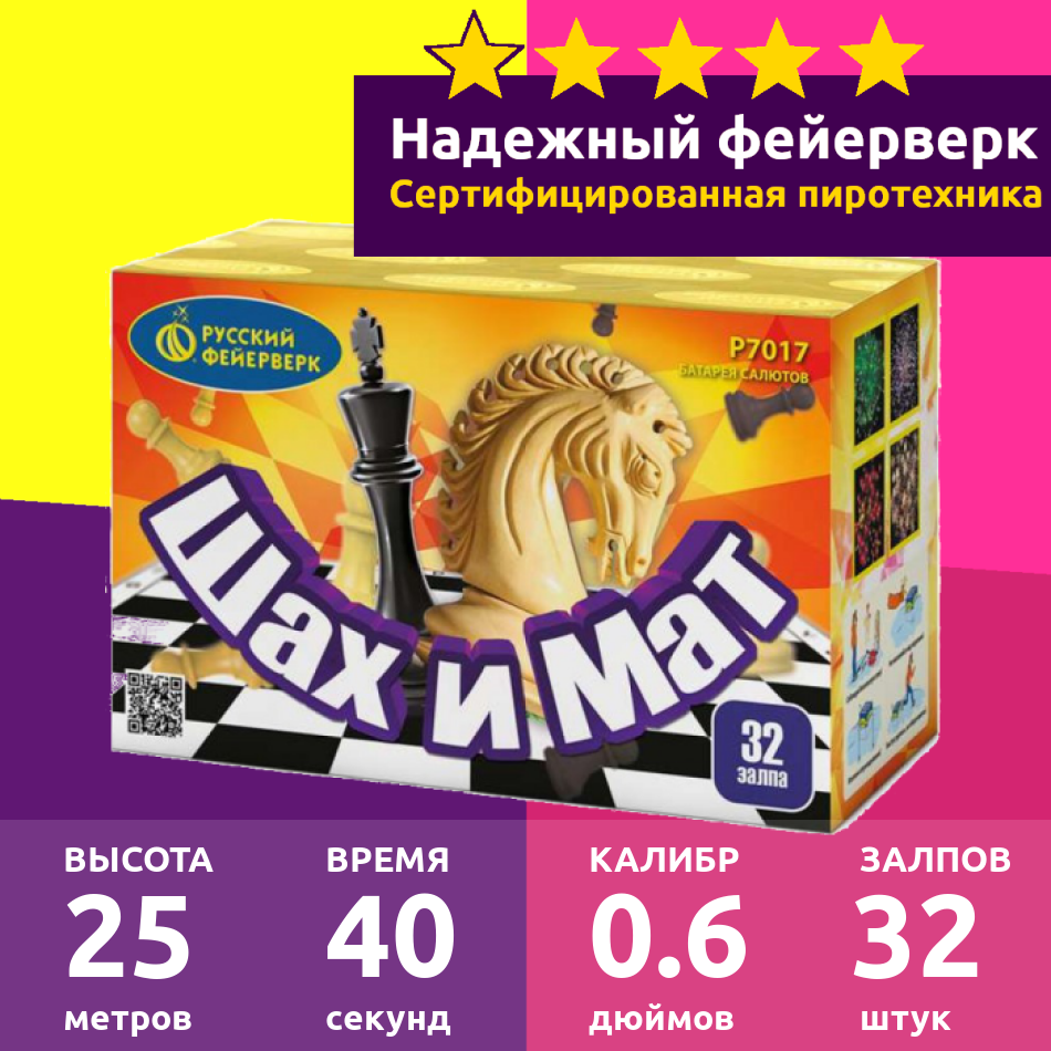 | Дополнительная информация | Батарея салютов Русский Фейерверк Шах и мат Р7017, 32 залпа 1 шт |
