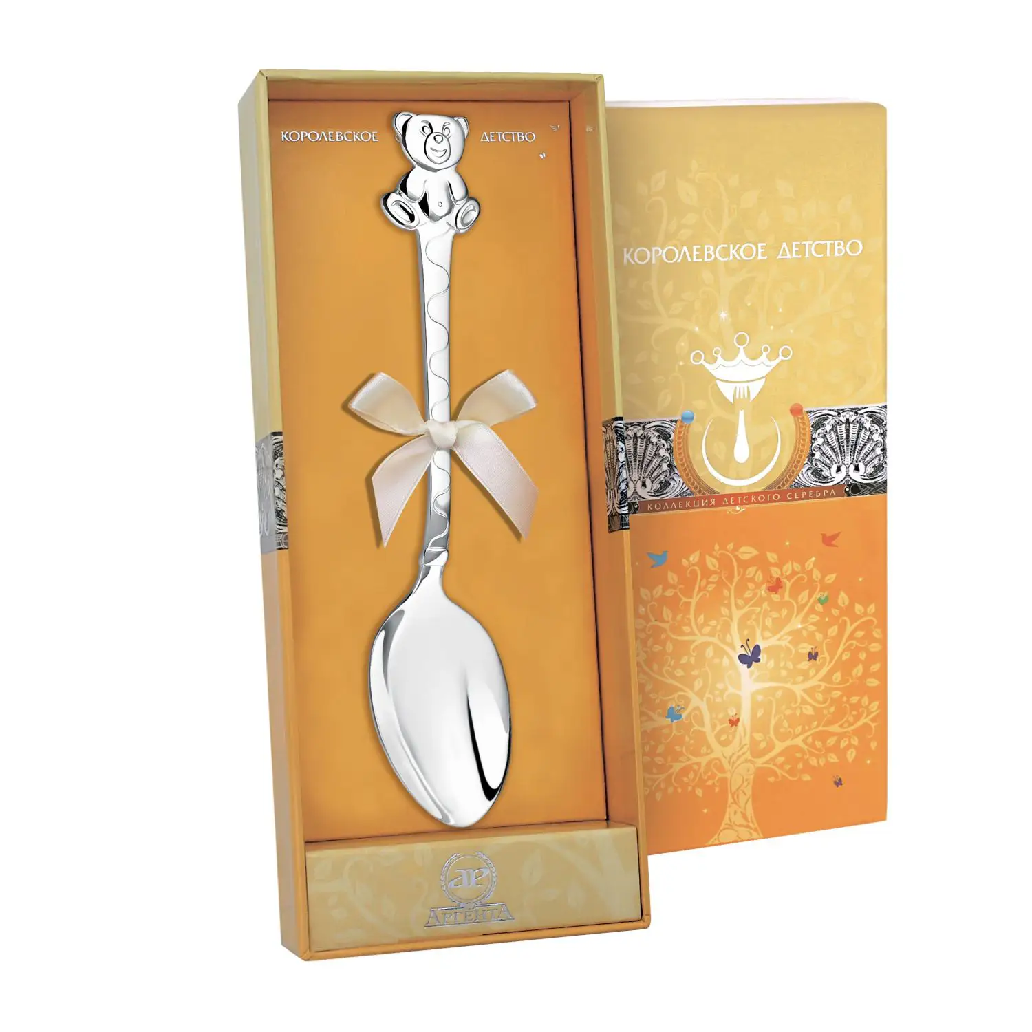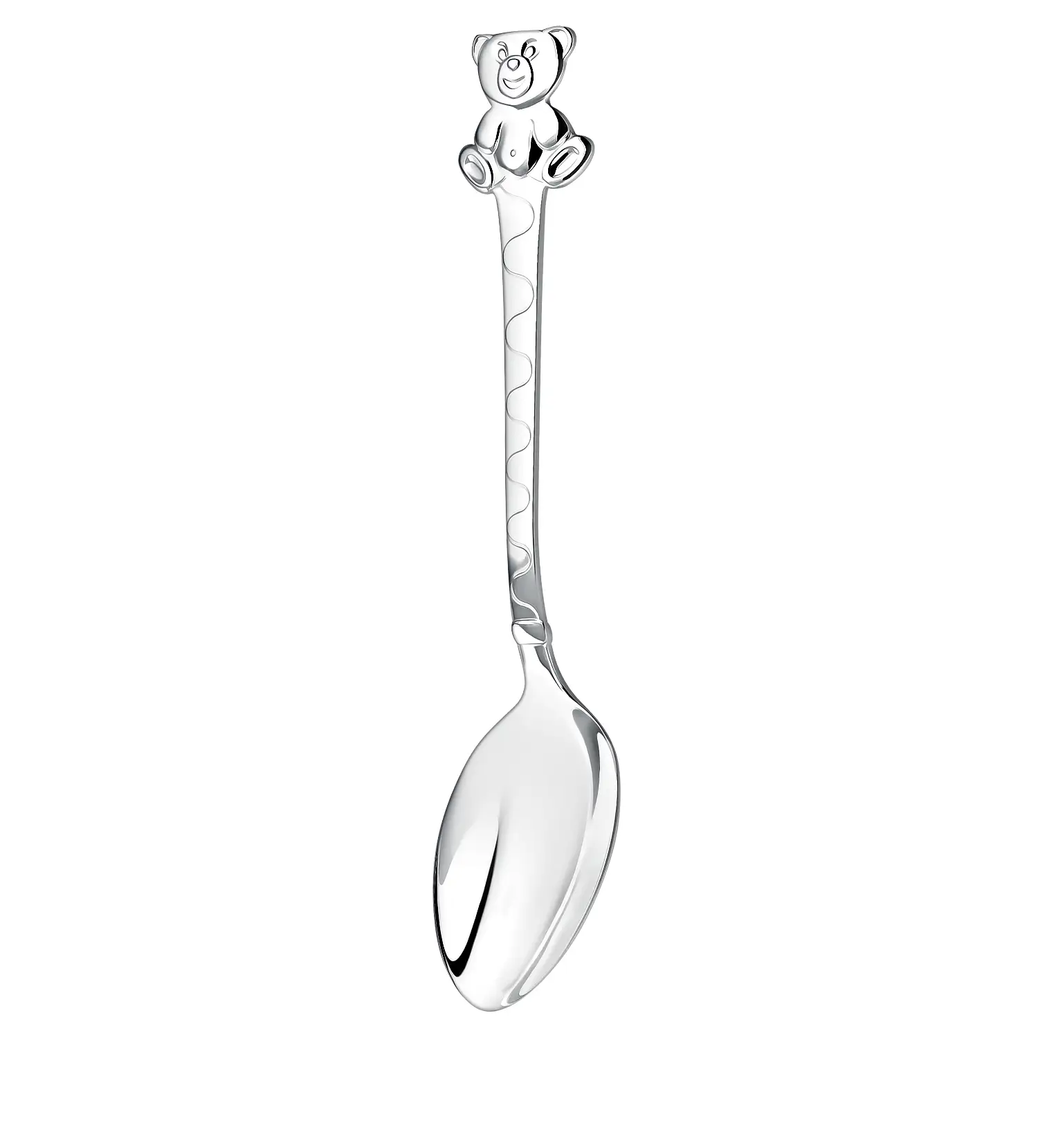 Купить Ложка десертная серебряная для кормления "Медведь" в футляре