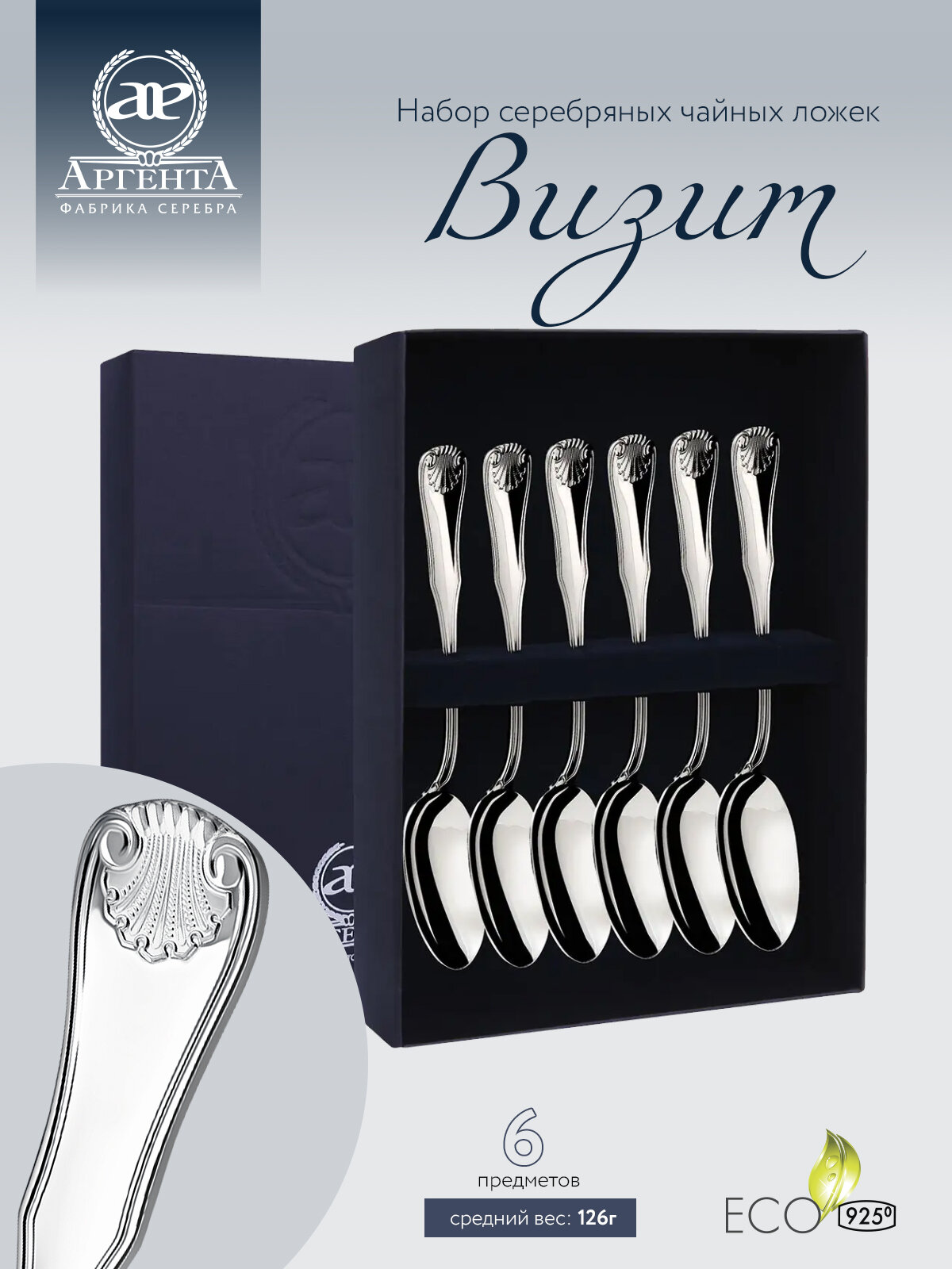 Набор серебряных чайных ложек "Визит" (6 предметов) в футляре