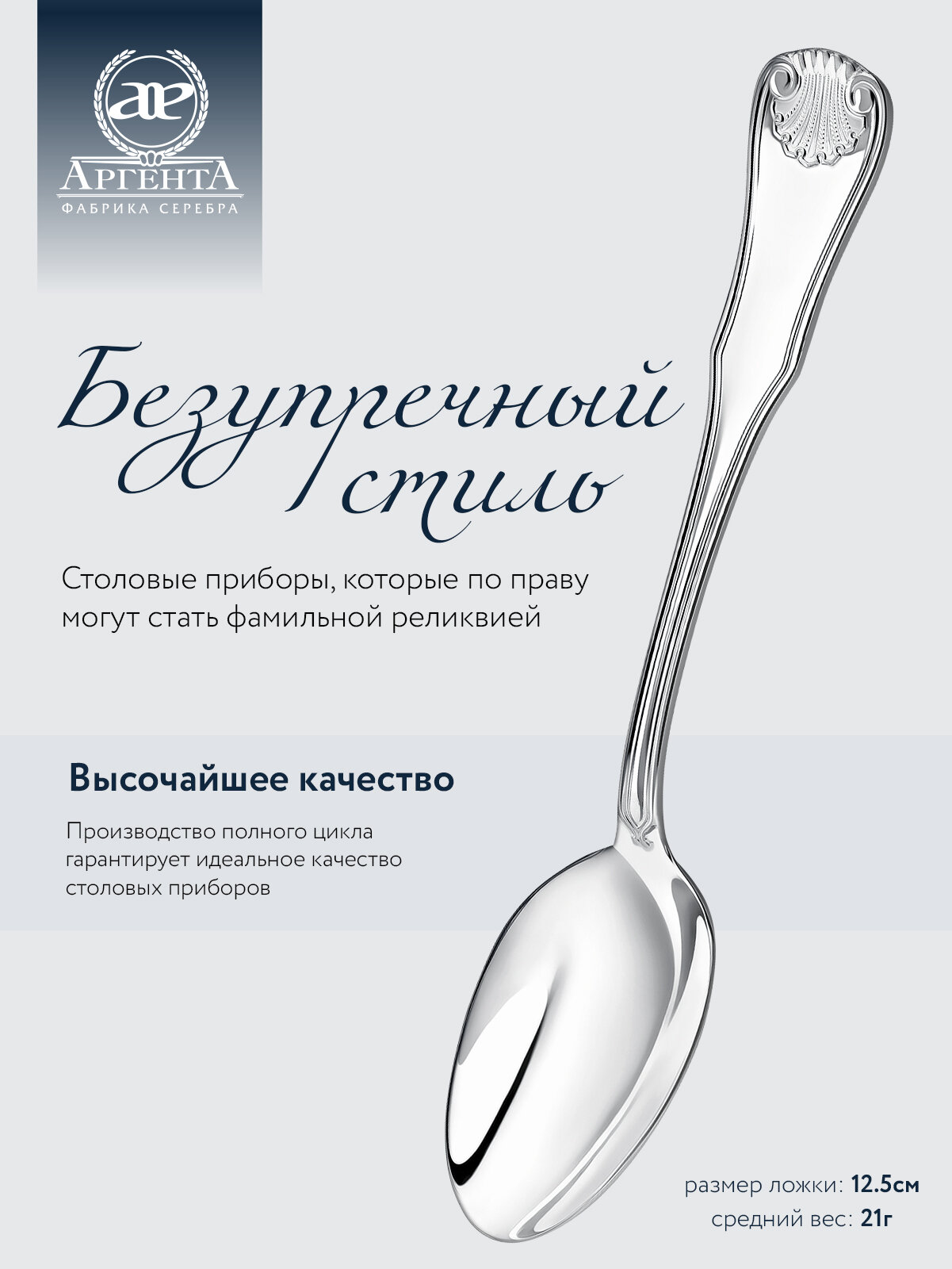 Серебряная чайная ложка с логотипом "Е" с позолотой от бренда "Аргента"