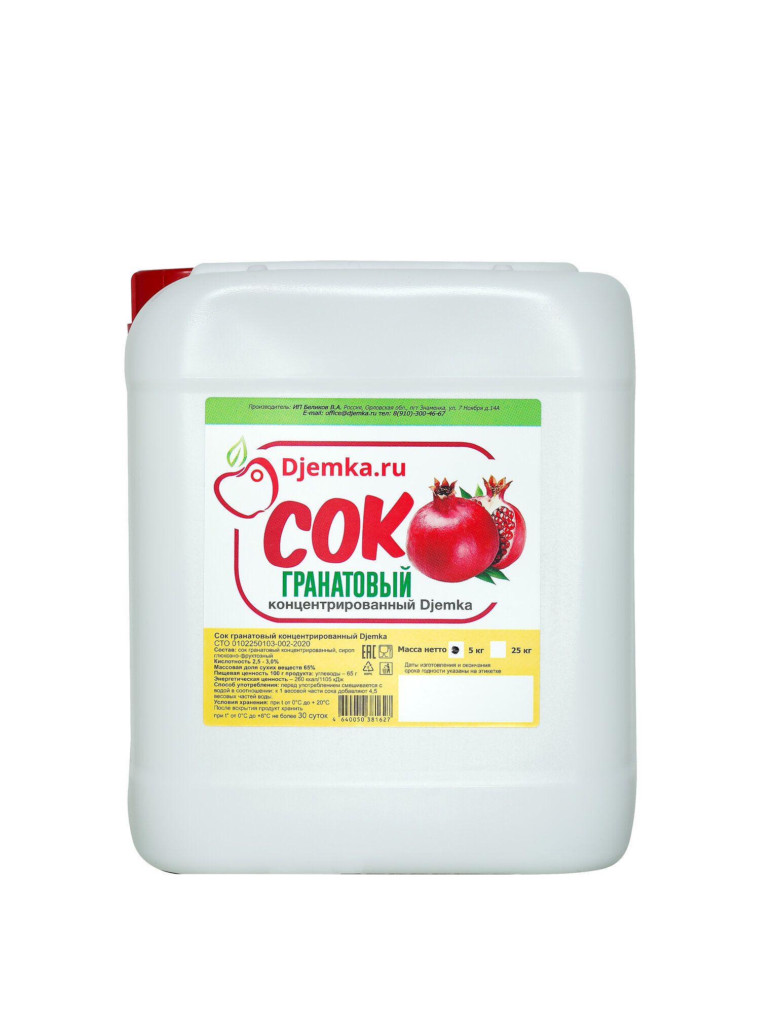 Сок Djemka.ru "Гранат", концентрированный, в пластиковой канистре, 5 кг