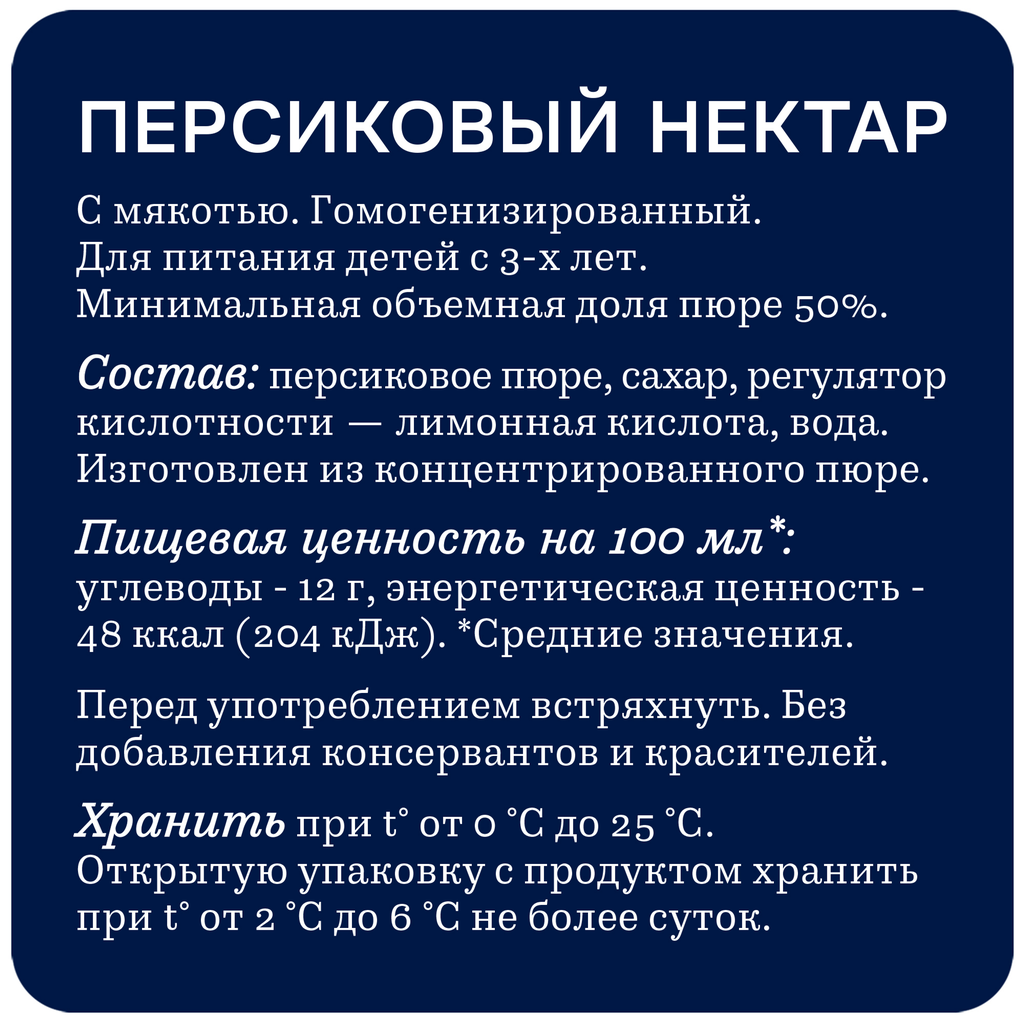 | Состав | персиковое пюре, сахар, регулятор кислотности - лимонная кислота, вода |