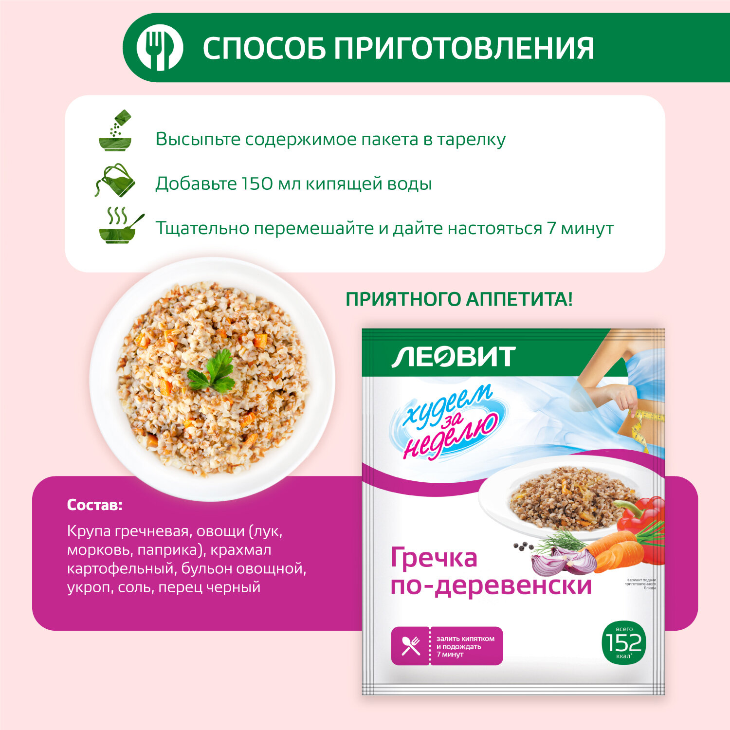 Гречка по-деревенски Худеем за неделю, 12 шт по 50 г, леовит интересное: