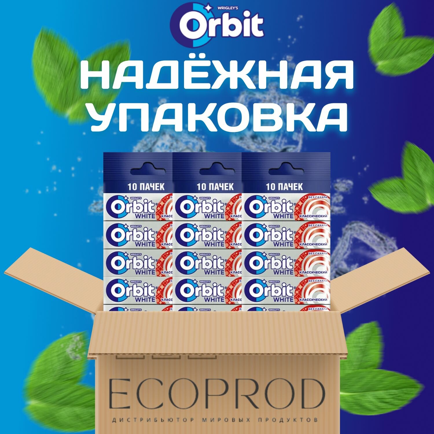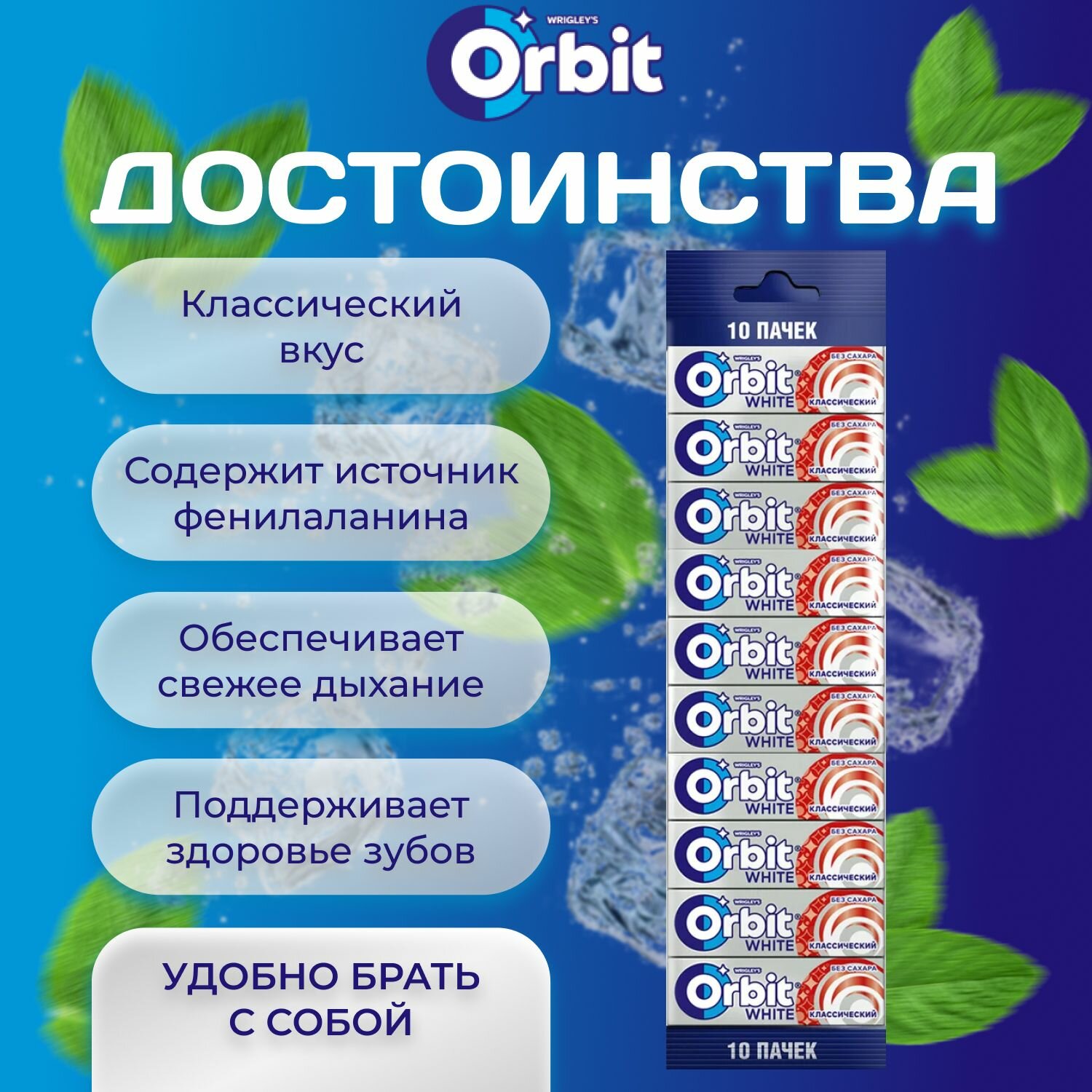 Orbit "White Классический" жевательная резинка без сахара, 10 пачек по 13,6 г