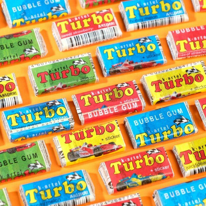 Жевательная резинка Turbosport racing, дыня, арбуз, яблоко, персик, 20*4,5 г 1шт. интересное: