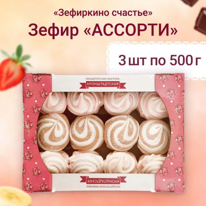 Зефир Ассорти "Зефиркино счастье" КФ кронштадтская, 500г х 3шт