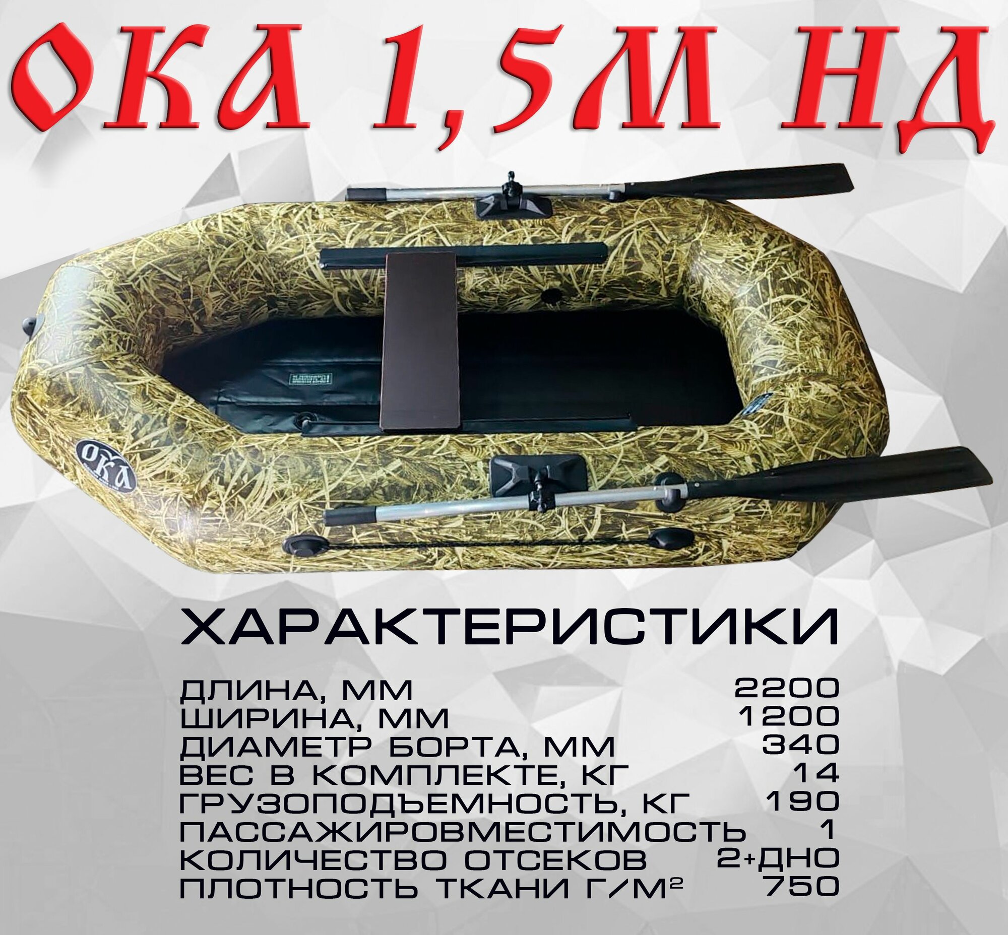 Надувная лодка пвх Ока 1.5м Надувное дно (220 см) гребная, цвет камыш, одноместная интересное: