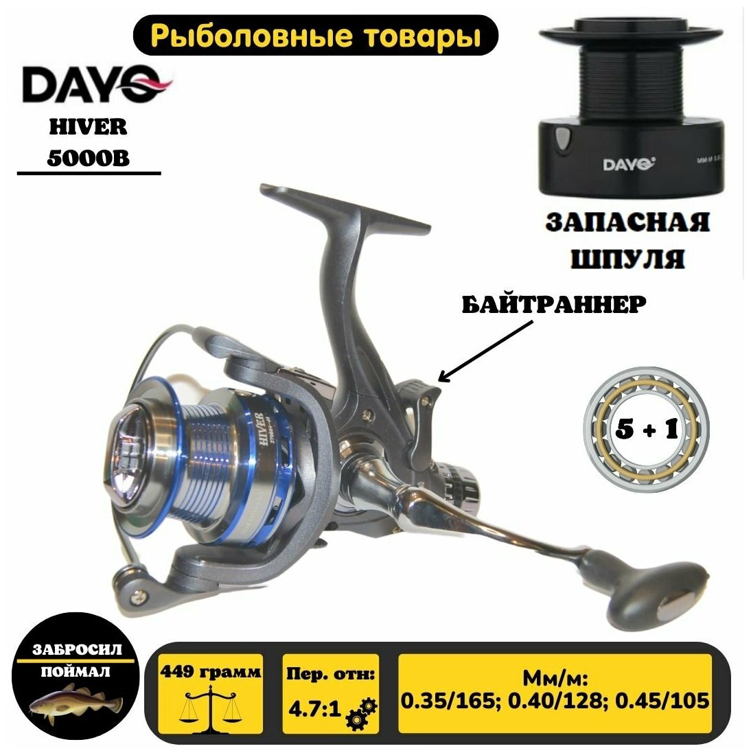 СохранитьКатушка с байтраннером DAYO HIVER 5000B / для фидера интересное: