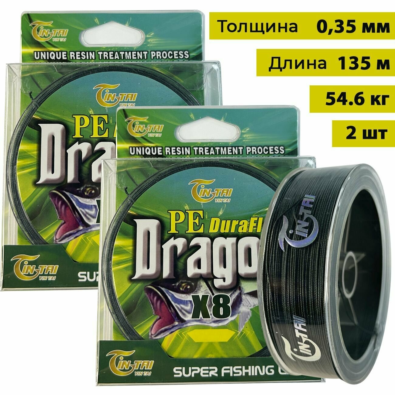 Шнур 8 жильный PE для рыбалки 0.25 мм 35.6 кг Dragon зеленый 2 шт 135 м
