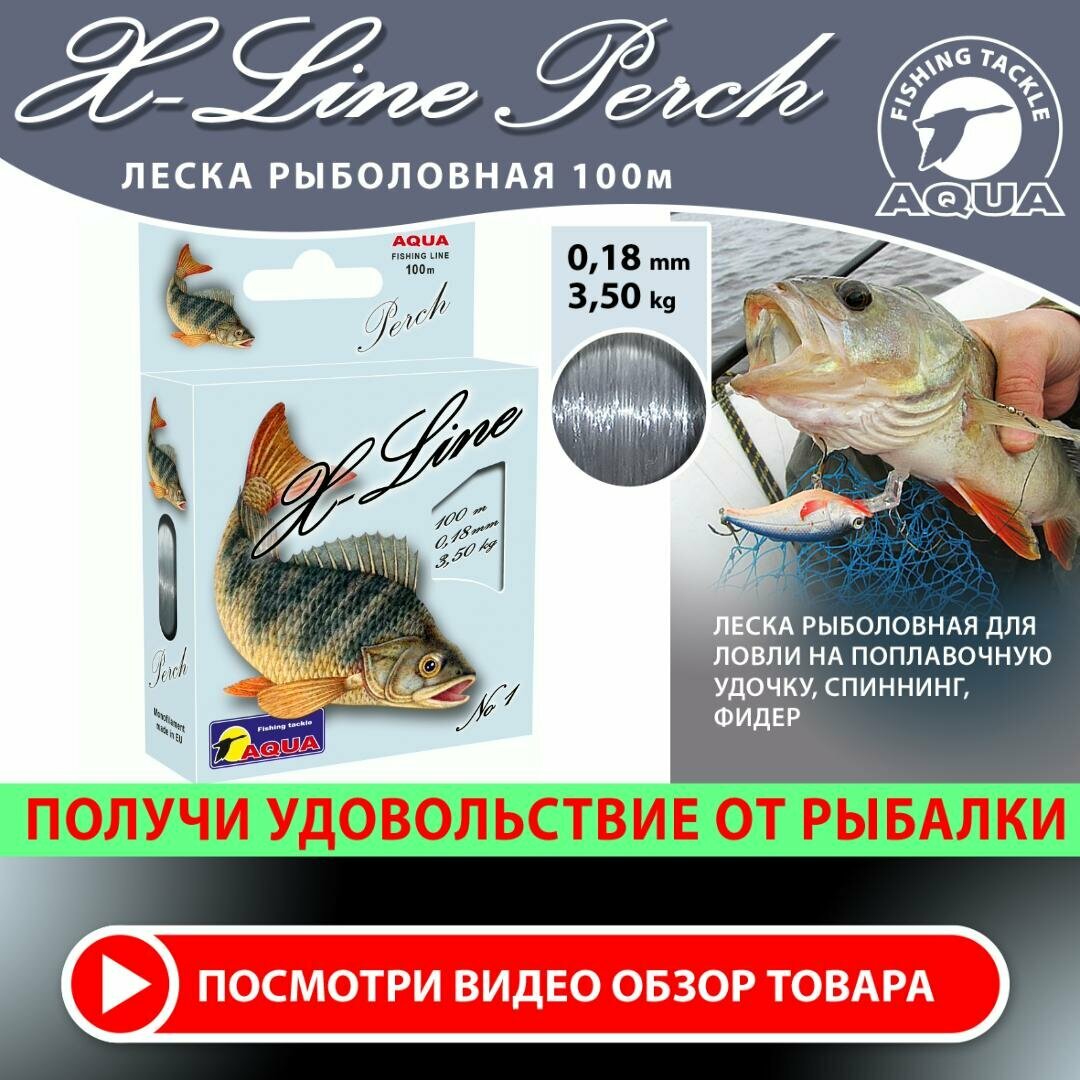 Монофильная леска для рыбалки Aqua X-Line Perch (Окунь) 0,18mm 100m ( 6 штук )