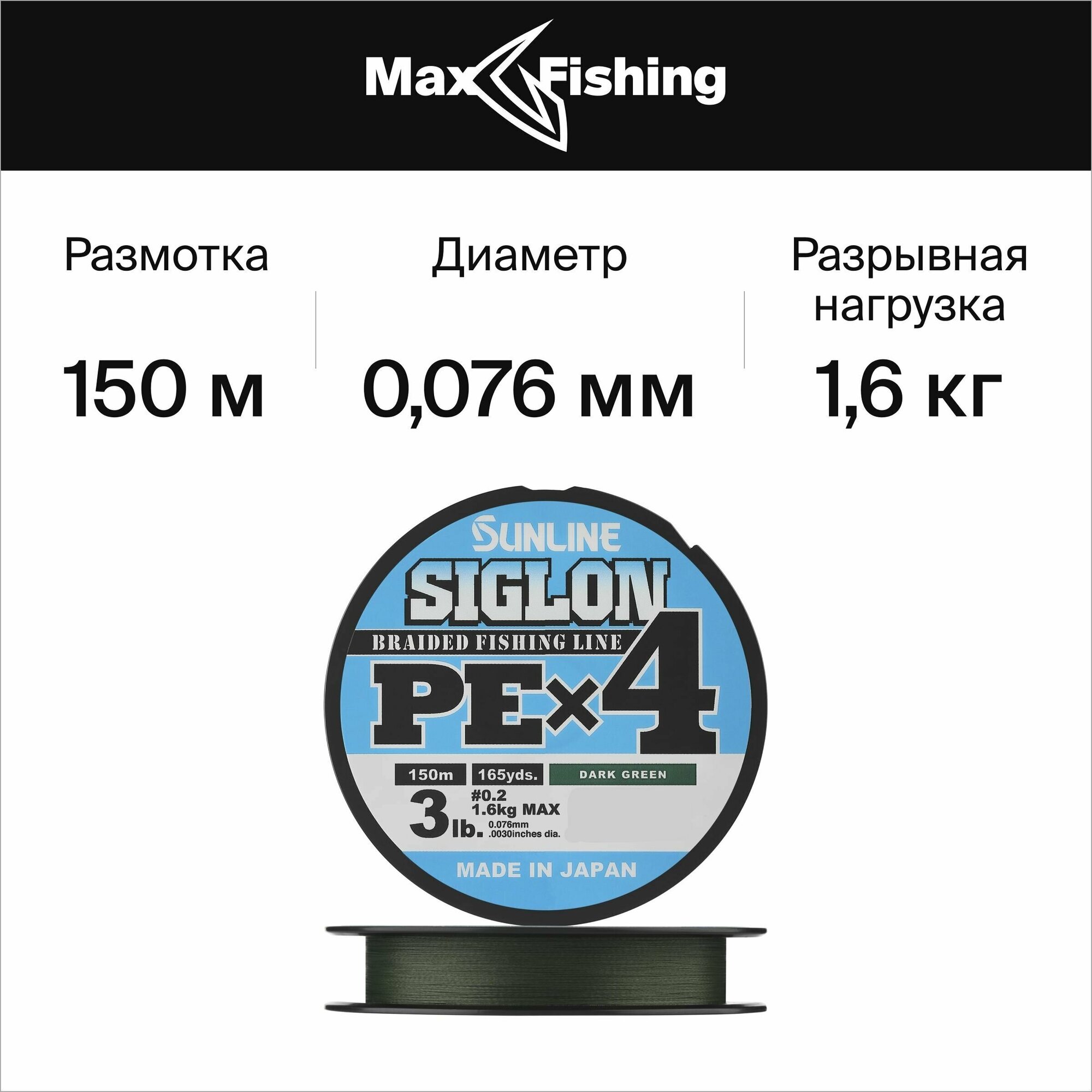 Купить Плетеный шнур SUNLINE Siglon PE X4 Dark Green #0.5 150м 0,121мм 3,3кг