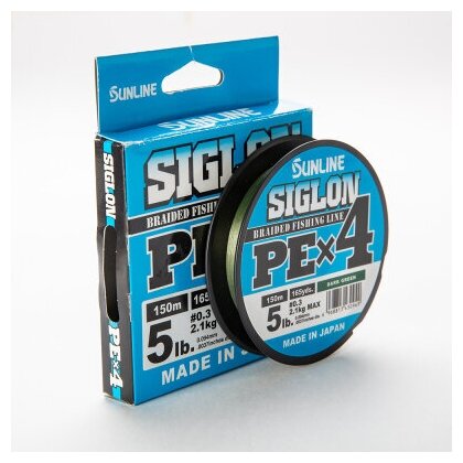 Плетеный шнур Sunline SIGLON PEx4 #0.3, 5lb, 2.1 кг, 0.094 мм, 150 м, цвет тёмно-зелёный
