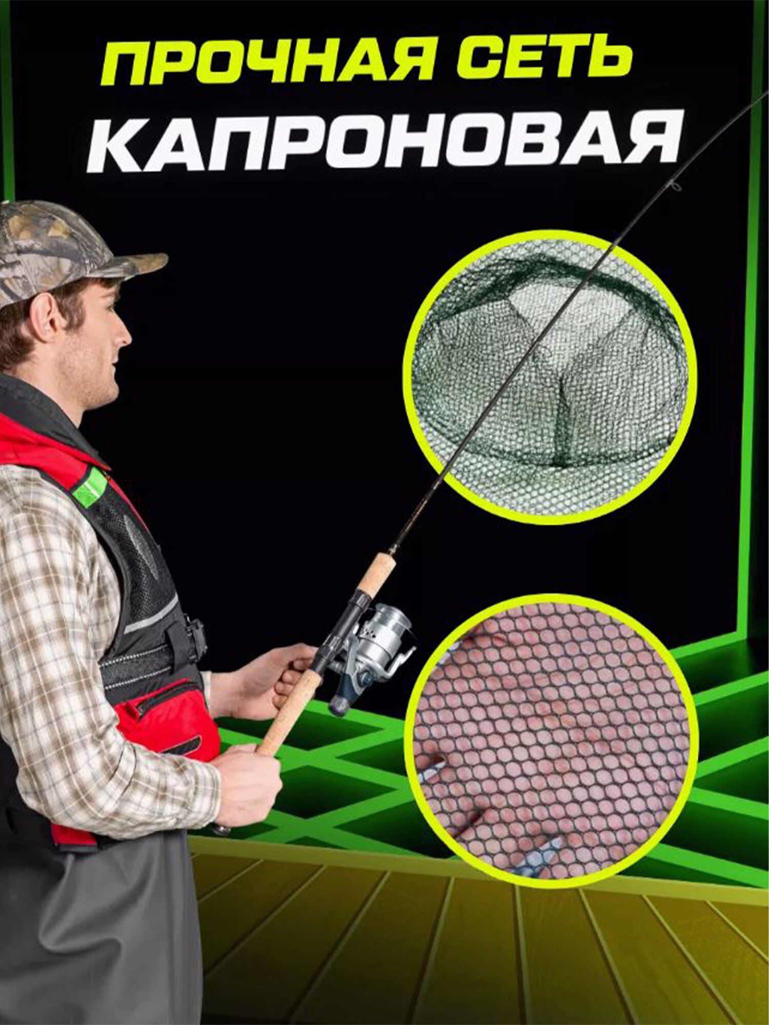 Подсак ручной мобильный плавающий 33х45см длина 74 см золото