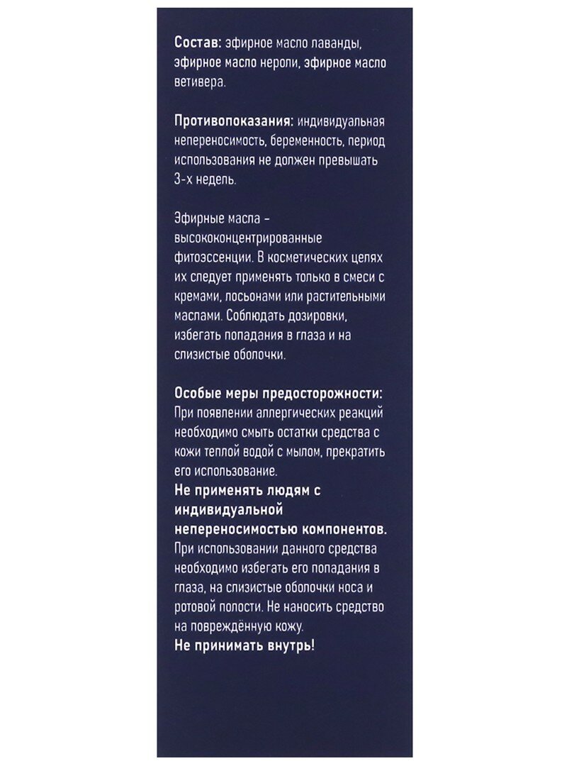 | Состав | эфирное масло лаванды, эфирное масло нероли, эфирное масло ветивера. |