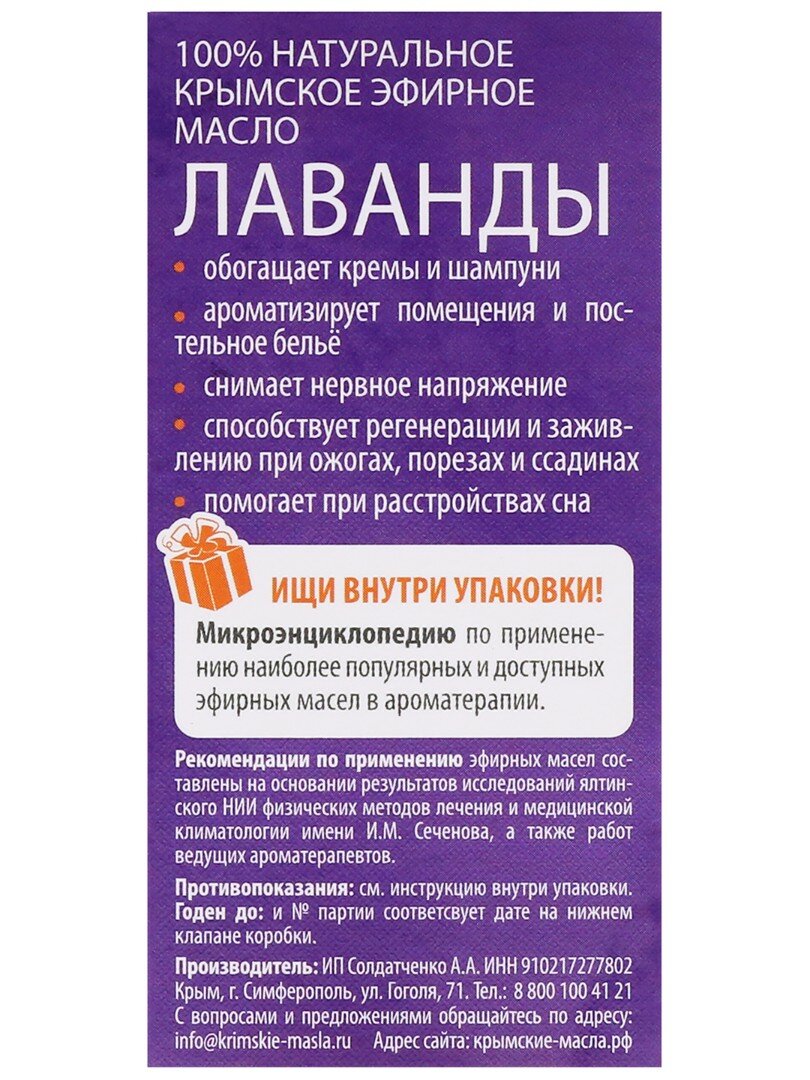 СохранитьЭфирное масло Лаванды, 5 мл, Крымские масла интересное: