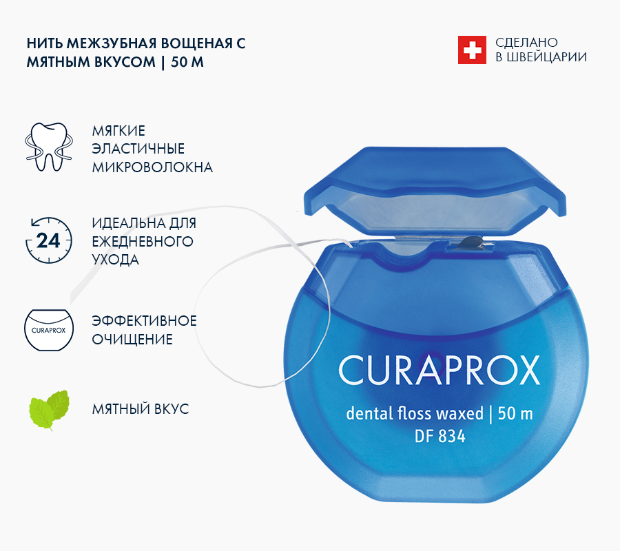 Нить межзубная мятная, CURAPROX DF 834, 50 м