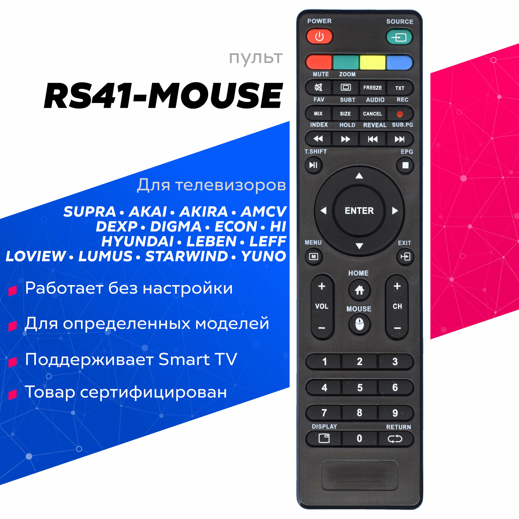 Пульт RS41-MOUSE для телевизора Dexp, Supra, Akai, Akira, AMCV, Dexp, Digma, Econ, HI, Hyundai, Leben, Leff, Loview, Lumus, Starwind, Yuno интересное: