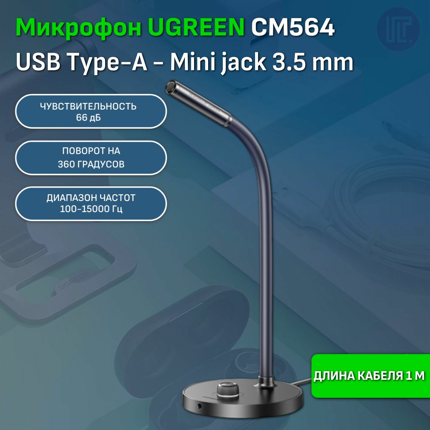 Микрофон Ugreen CM564 90416 с USB настольный Desktop USB Microphone без шумоподавления, черный . интересное: