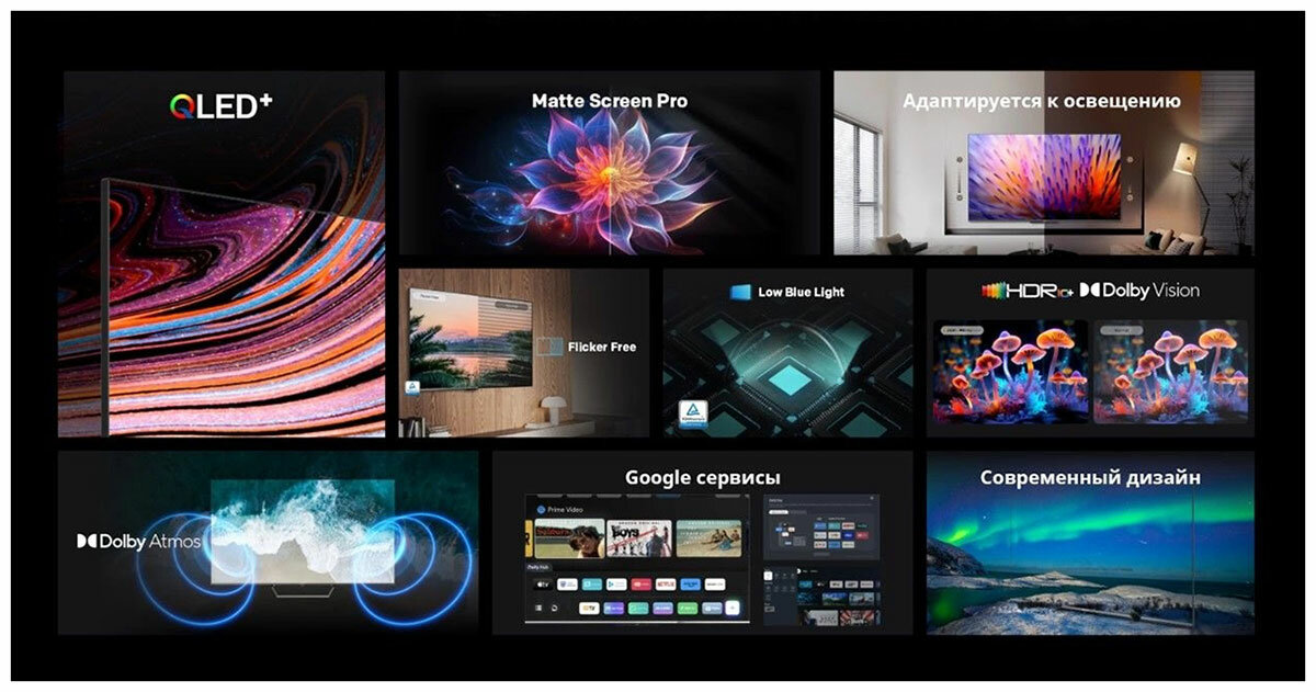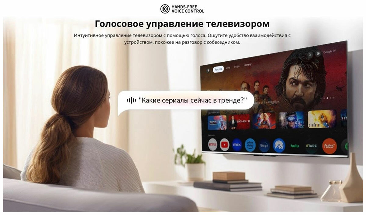 Телевизор Skyworth Eye Care 65Q66G, 65", QLED, 4K Ultra HD, Google TV, серебристый