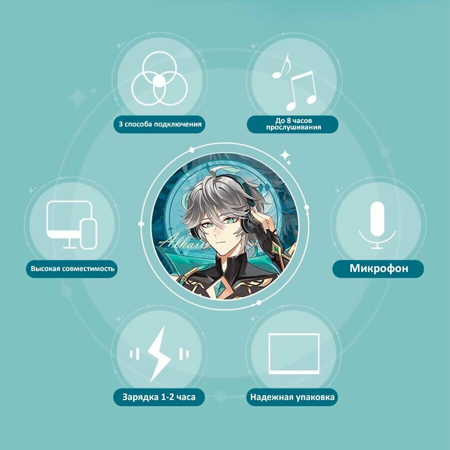 Купить Беспроводные Bluetooth наушники Genshin Impact Геншин Импакт Аль-Хайтам с микрофоном, блютуз гарнитура для телефона