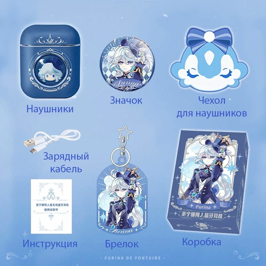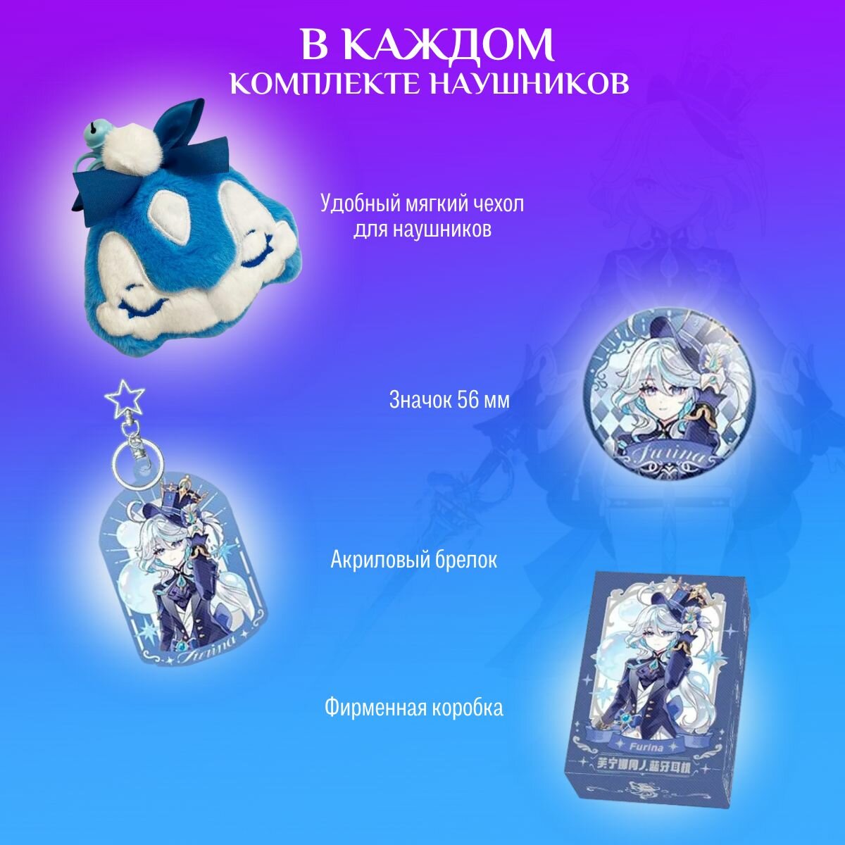 Купить Беспроводные наушники Bluetooth Genshin Impact Геншин Импакт Фурина с микрофоном и сенсорным управлением, блютуз гарнитура для телефона, подарок детям